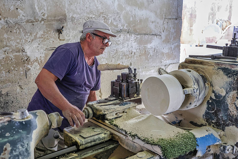 Si rientrerà in paese per incontrare uno scalpellino che lavora la pietra leccese nel laboratorio di Texun, aperto nel 1980, dove si osserva come la pietra porosa e versatile viene plasmata con sapienza e prende forma, si ascoltano i racconti e si riceve un oggetto originale, realizzato per l’occasione.