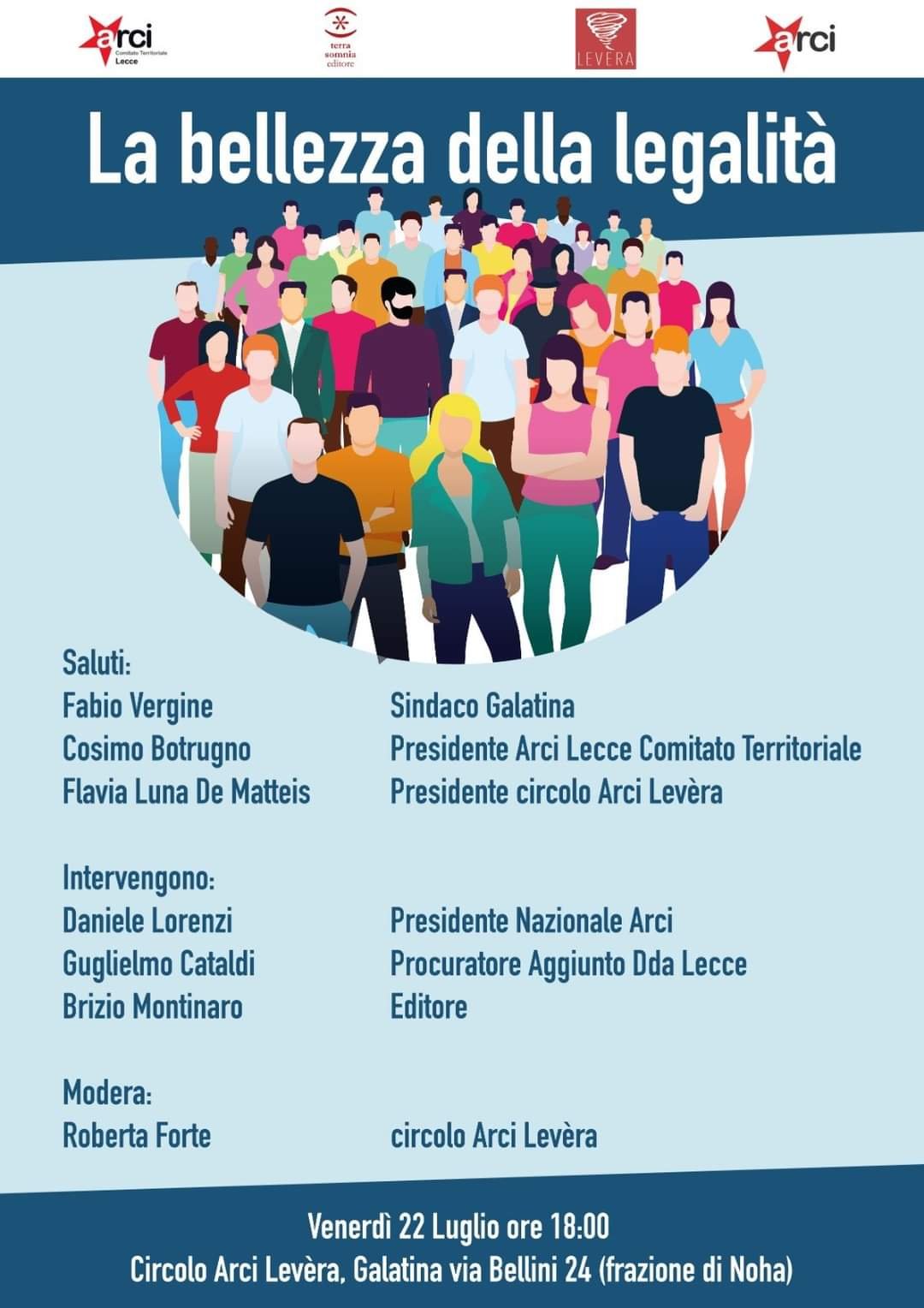 Un incontro al Circolo Arci Levèra di Noha (Galatina), venerdì 22 luglio, per parlare del ruolo dei Circoli Arci nella diffusione della cultura della legalità contro le mafie.