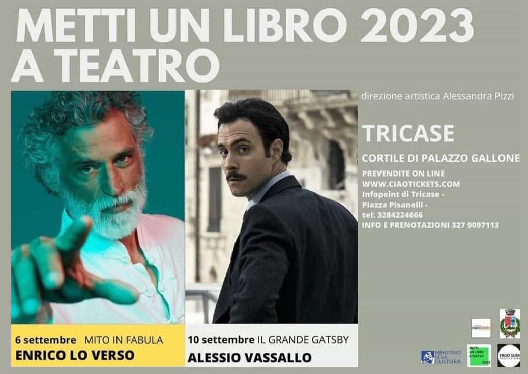 Inizio settembre con il grande teatro e attori del calibro di Enrico Lo Verso e Alessio Vassallo. Mercoledì 6 settembre il “Mito in Fabula” di Enrico Lo Verso; domenica 10 i ruggenti anni ’20, il jazz ed il sogno americano con “Il Grande Gatsby” interpretato da Alessio Vassallo con la regia di Alessandra Pizzi