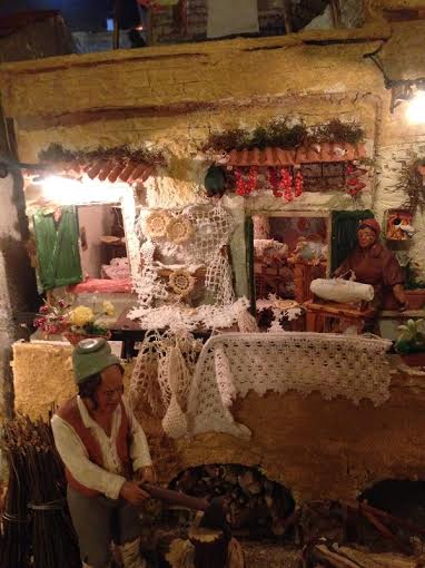 Si, perché ad un’osservazione attenta il presepe è una scrupolosa ricostruzione del paese di Acquarica e delle sue case, dei suoi palazzi, delle chiese e delle strade, ma non solo, all’interno di ogni edificio si svolge la vita domestica di tutti i giorni: sono stati infatti ricostruiti con certosina pazienza i letti, le carte da parati i centri e tutti i piccolissimi oggetti che popolano una casa. Ognuno di essi è pazientemente costruito secondo i principi antichi: così le scale a pioli, ricavate dai rami infestanti degli ulivi non sono fissate con l’ausilio di colle, bensì secondo il principio tradizionale che vuole la legna bagnata e poi seccata per deformarne i pori; oppure l’ombrellaio che anima le strade del magnifico presepe: i suoi ombrelli, davvero tanti, sono stati costruiti con lattine di alluminio, che rispondono allo stesso funzionamento di apertura e chiusura degli ombrelli normali.