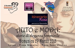 Chanel come Ford, Vionnet come Rolls Royce: queste similitudini che appartengono alla storia della moda hanno generato un connubio, tipicamente femminile, di stile, significato, forme e costume. In un excursus che ha l’obiettivo di ripercorrere l’evoluzione della donna nella moda e sui mezzi di trasporto, ritorna puntuale, domenica prossima, 29 marzo, l’immancabile appuntamento leccese in auto e moto d’epoca “al femminile”, inserito nel cartellone della rassegna “Itinerario Rosa” – promossa dall’Ufficio Cultura del Comune di Lecce e giunta alla sua 17ma edizione.