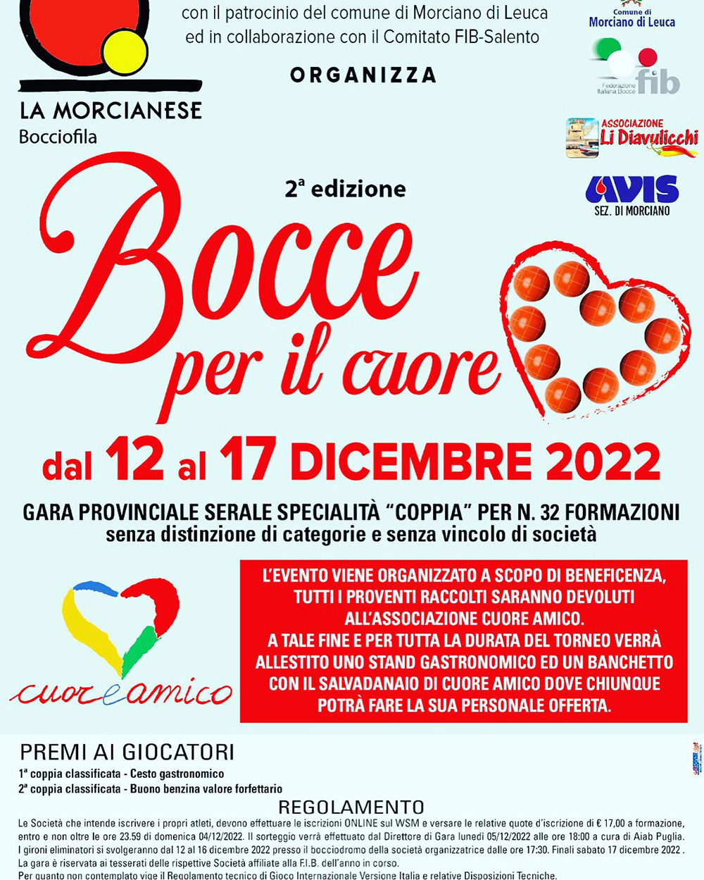 Organizzato dalla Morcianese Bocciofila con il patrocinio del Comune di Morciano di Leuca ed in collaborazione con il comitato FIB-Salento.