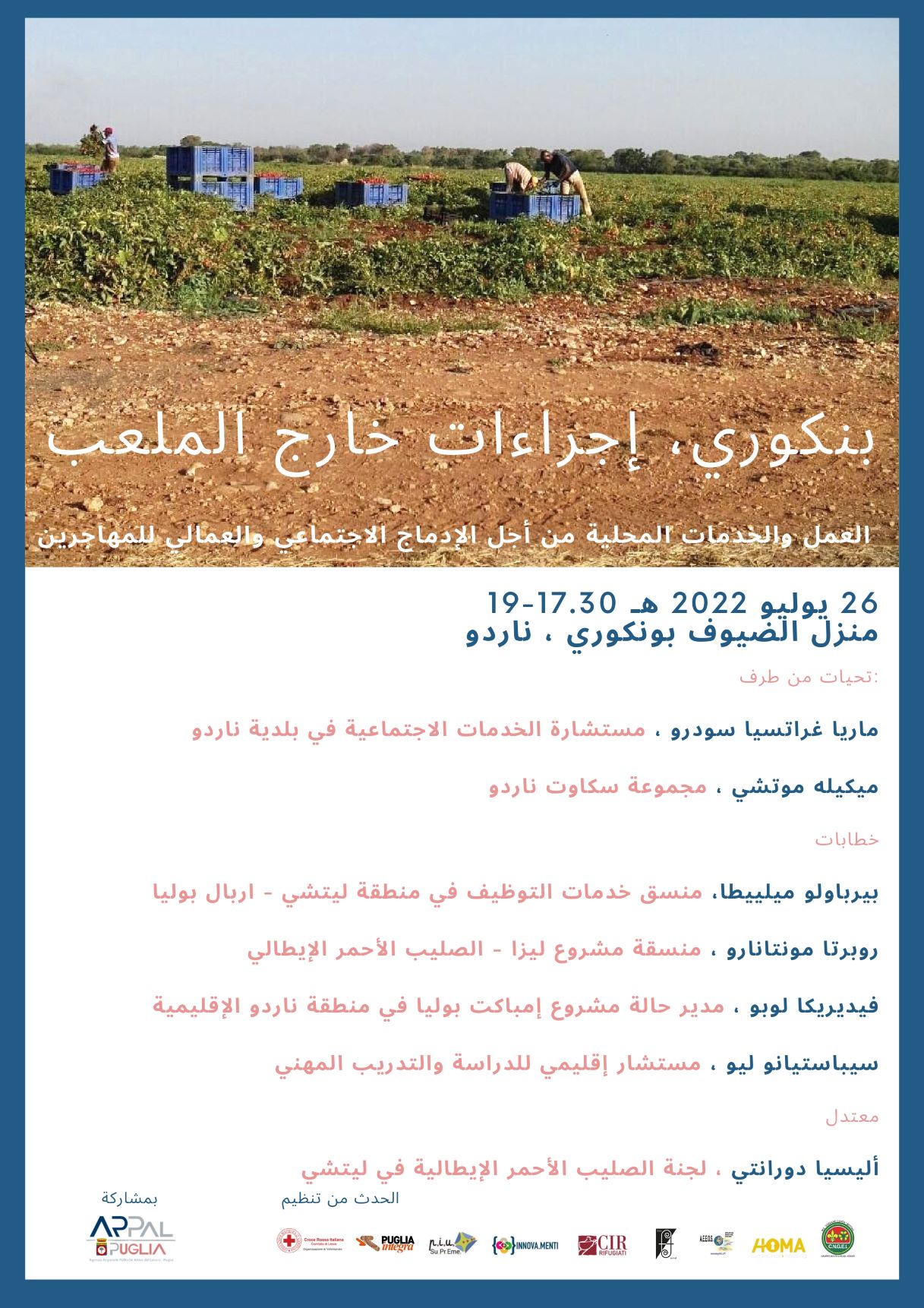 L’incontro del 26 luglio è organizzato in collaborazione con il progetto “P.I.U. Su.Pr.Eme. Percorsi Individualizzati di Uscita dallo sfruttamento a supporto ed integrazione del progetto SUPREME”, finanziato dal PON INCLUSIONE FSE 2014-2020 – Direzione Generale dell’Immigrazione e delle politiche di integrazione. L’obiettivo generale è l’attivazione di un sistema territoriale che promuova, realizzi e supporti processi di inclusione culturale, sociale, socio-sanitaria, abitativa e occupazionale di cittadini stranieri vittime o a rischio di sfruttamento lavorativo nel territorio della provincia di Lecce e in particolare dell’ambito territoriale di Nardò. Il sistema territoriale, che con “P.I.U. Su.Pr.Eme.” si sta cercando di attivare, consente di superare la gestione emergenziale e puntuale del fenomeno stagionale in favore di un approccio strutturale di sistema, espressione di una cultura e di una comunità inclusive.
