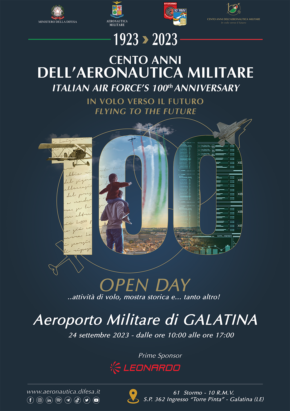 Continuano le celebrazioni nell’anno del centenario della costituzione dell’allora Arma Azzurra: la base aerea salentina organizza un nuovo “Open Day” per domenica 24 settembre