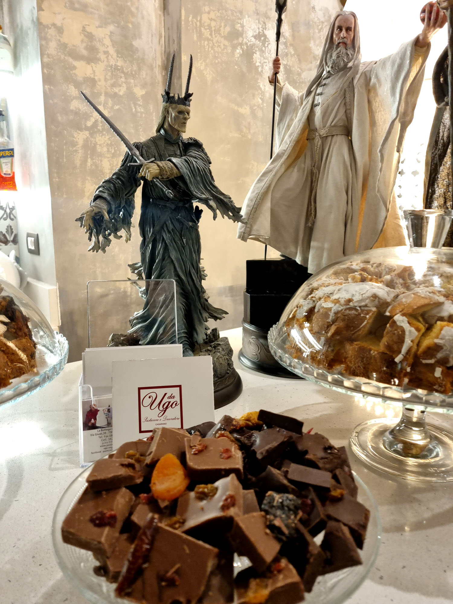 Ci si ritrova immersi in un’atmosfera anni ’90, tra statue e personaggi della Marvel e DC, pile di fumetti e cartoni animati, che scorrono in tv nell’ampio salone con camino sotto volte antiche, dove nel pomeriggio di sabato 21 gennaio si potranno anche degustare gli ottimi vini di Garofano Vigneti e Cantine di Copertino, come il rosato Girofle e il rosso Simpotica, selezionati da Giovanna Pepe dell’Enoteca Melacotogna Vini & Affini di Salve e gli squisiti cioccolatini della pasticceria da Ugo di Casarano del mâitre chocolatier Ugo Negro, erede di una tradizione che risale al 1921, che guiderà i golosi in un originale laboratorio sulla storia del cioccolato, che affonda le radici nelle popolazioni Maya e Azteca, fino ai nostri giorni.