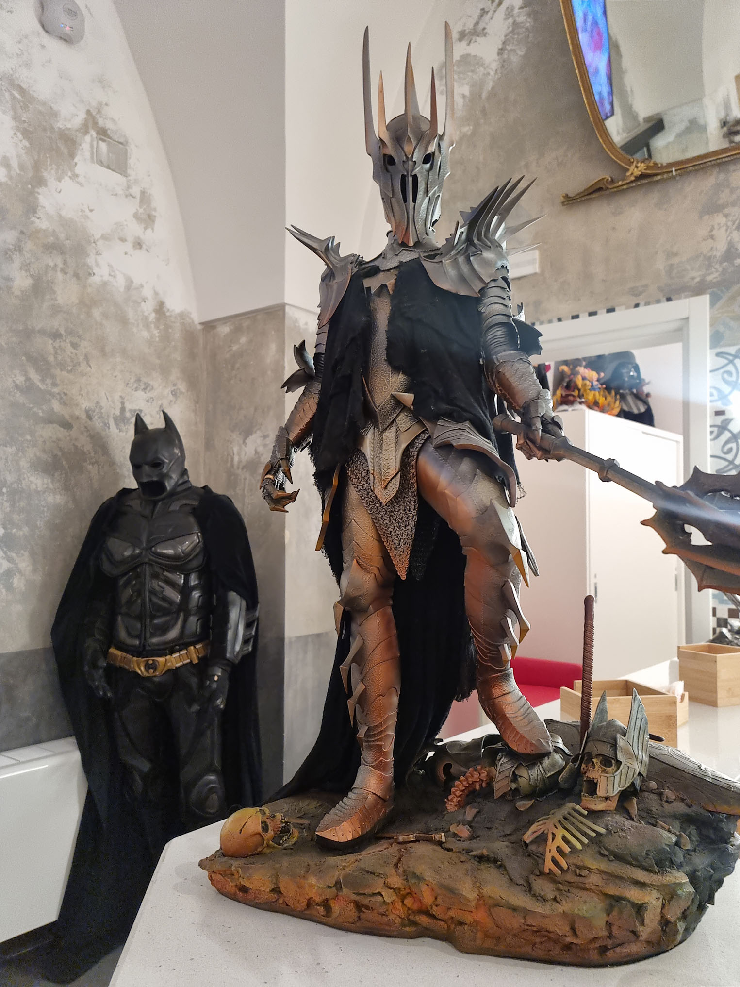 E ancora Doctor Doom, il Dottor Destino, il cattivone dei Fantastici Quattro; Wolverine il più rappresentativo degli X-Men, un mutante con gli artigli, i vari personaggi di Star Wars, a partire dal super cattivo Darth Vader; la statua di Batman con il volto dell’attore Tim Burton; quella di Joker con le sembianze di Heath Ledger ne Il Cavaliere Oscuro di Christopher Nolan e il Superman di Christopher Reeve. E poi i personaggi della Trilogia I Signori degli Anelli, le Tartarughe Ninja, le statuette di Dragon Ball, Harry Potter e tantissimo altro.