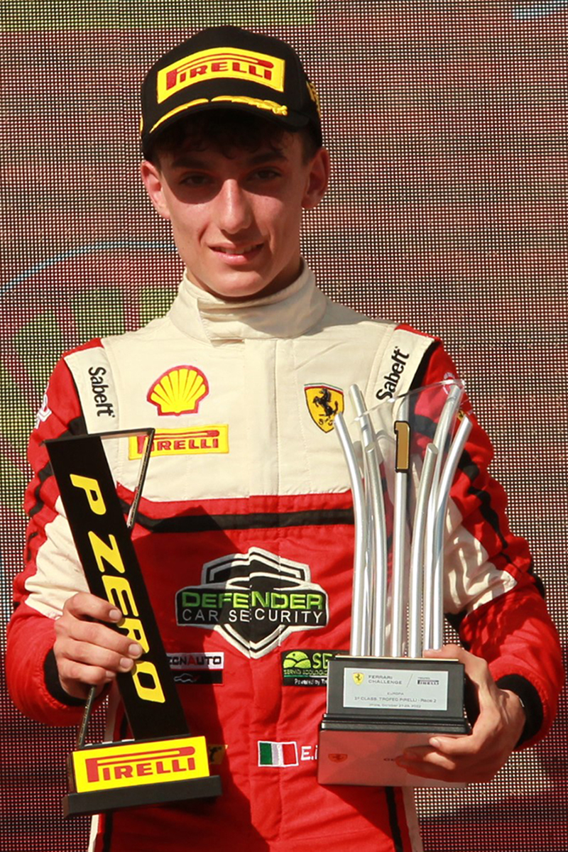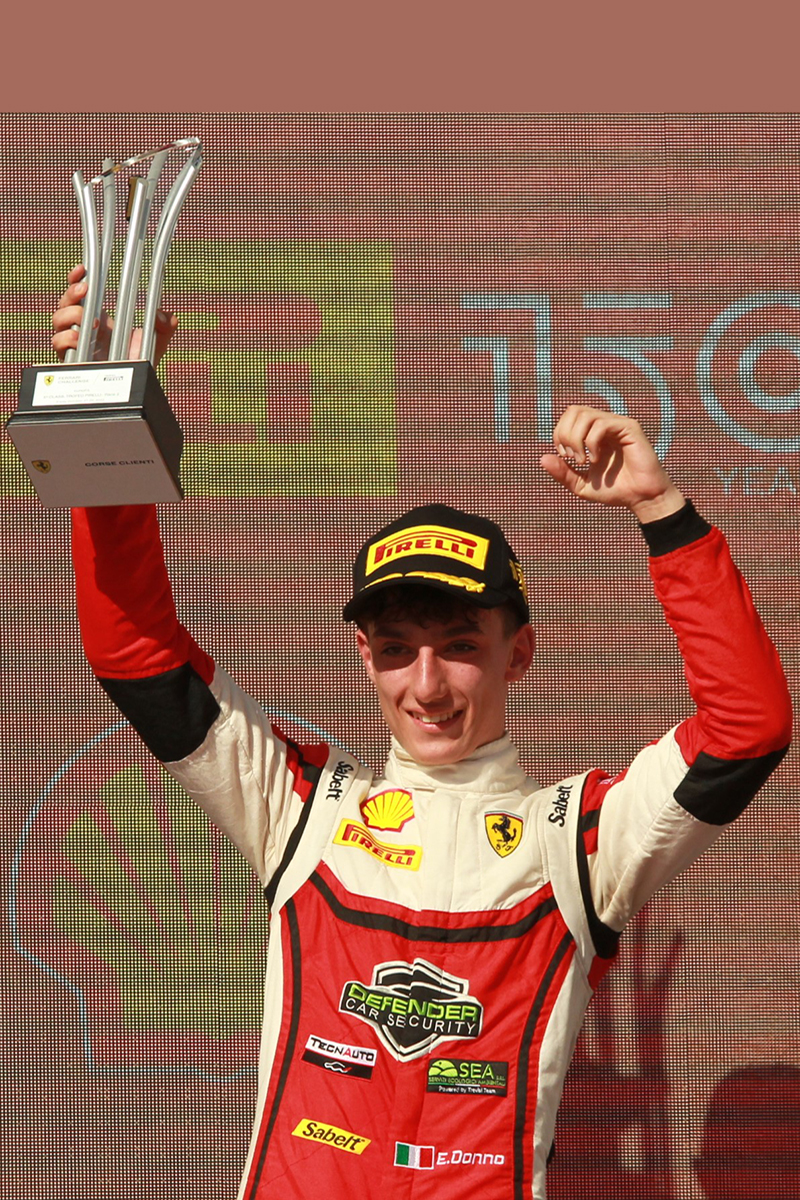 Ha da qualche giorno compiuto 18 anni ma corre sulle piste da quando ne aveva appena 9, negli ultimi tre anni la sua carriera da pilota professionista ha raggiunto i primi successi a livello internazionale, tanto che, dal 24 marzo a Valencia (Spagna), Eliseo Donno sarà per la seconda stagione tra i 50 piloti-Pro europei, che prenderanno parte al Ferrari Challenge 2023 e si contenderanno il “Trofeo Pirelli”.