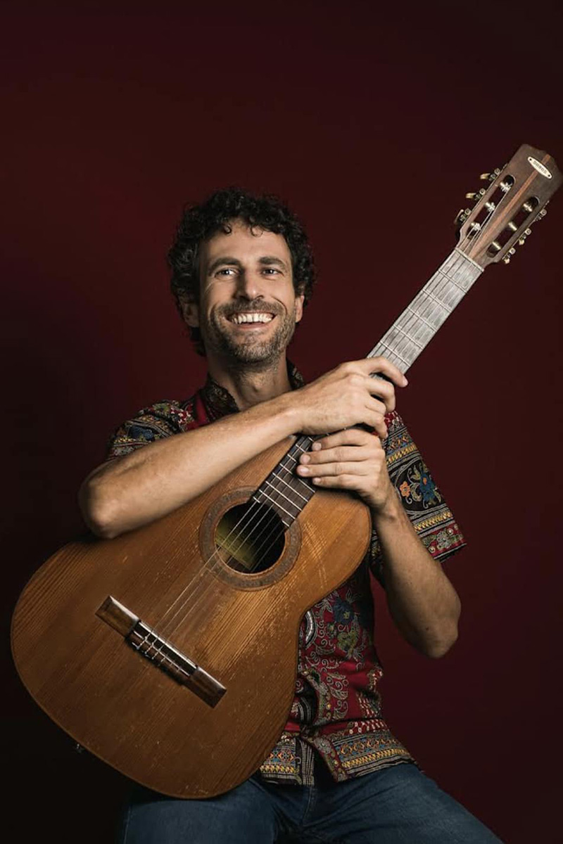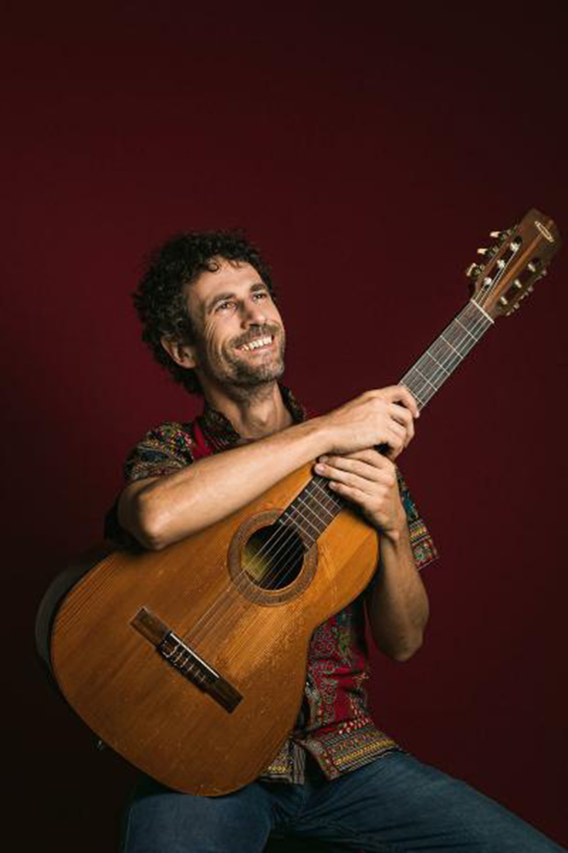 Da solo con la sua chitarra e la viola caipira (uno strumento tipico dell’entroterra brasiliano), Danilo Moraes traduce i ritmi tradizionali del suo Paese in canti complessi e melodiosi e, allo stesso tempo, semplici e facili da memorizzare.