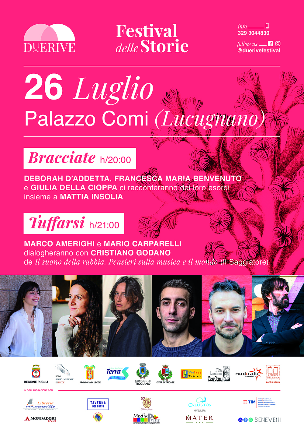 Numerosi gli enti che hanno contribuito alla realizzazione di questa terza edizione del festival, a partire da Regione Puglia, Comune di Tricase e Associazione Tina Lambrini – Palazzo Comi, già partner nelle precedenti edizioni, a cui si sono aggiunti il Polo Biblio-Museale di Lecce, Unione dei Comuni Terra di Leuca, Associazione Pro Loco Tricase e Comune di Tiggiano.
