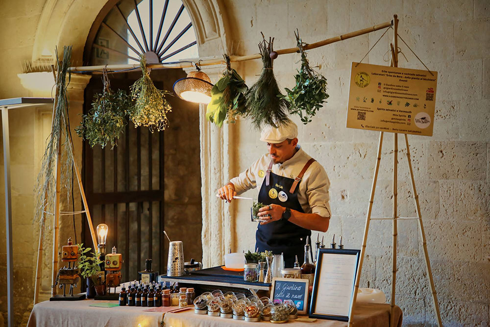 Appassionati di erbe spontanee ed esperti di cocktail nella loro innovativa postazione mobile Bar Mita Volante raccontano come le piante raccolte possono essere trasformate in infusi, sciroppi, distillati aromatizzati e liquori, come il loro Pineta da baby-pigne di Pino d’Aleppo. Ognuno può scegliere il proprio drink selvatico, come il Menta Fresh con rhum bianco, sciroppo alle tre mente, acqua tonica o il Dry Fennel con distillato al finocchietto selvatico di Otranto e acqua tonica o ancora il Negroni Salentino con Vermouth Mita, bitter rosso, amaro di Santoreggia e gin agli agrumi.