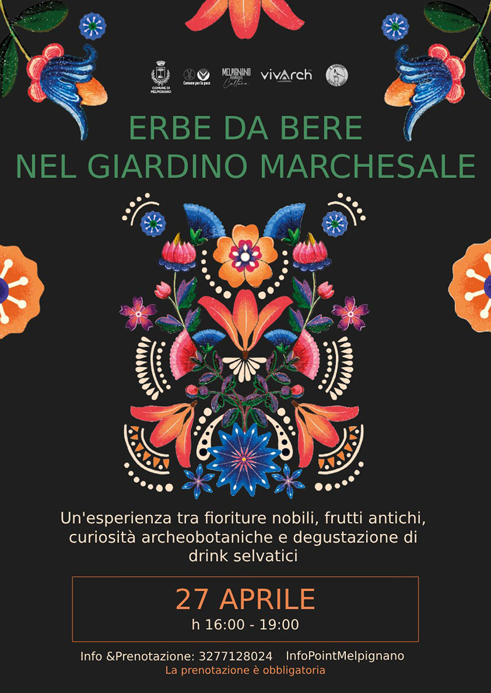 Il percorso esperienziale “Erbe da Bere nel Giardino Marchesale” nato lo scorso anno all’interno del progetto “Melpignano promuove cultura” pensato dall’amministrazione comunale per valorizzare in ogni stagione il piccolo paese della Grecìa Salentina, oggi è riproposto da Vivarch Associazione di Promozione Sociale Pugliese, che propone durante tutto l’anno itinerari alla scoperta di arte, storia, natura e tradizioni.