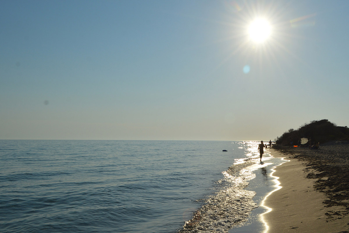 Tra dune e pineta, si passeggia per cinque chilometri senza dislivelli, sulla battigia accanto all’acqua cristallina, tra la vegetazione spontanea che preserva le dune dall’erosione, come lo sparto pungente e la gramigna delle spiagge, ammirando i “gigli” di mare e poi all’ombra dei pini, tra storie e aneddoti