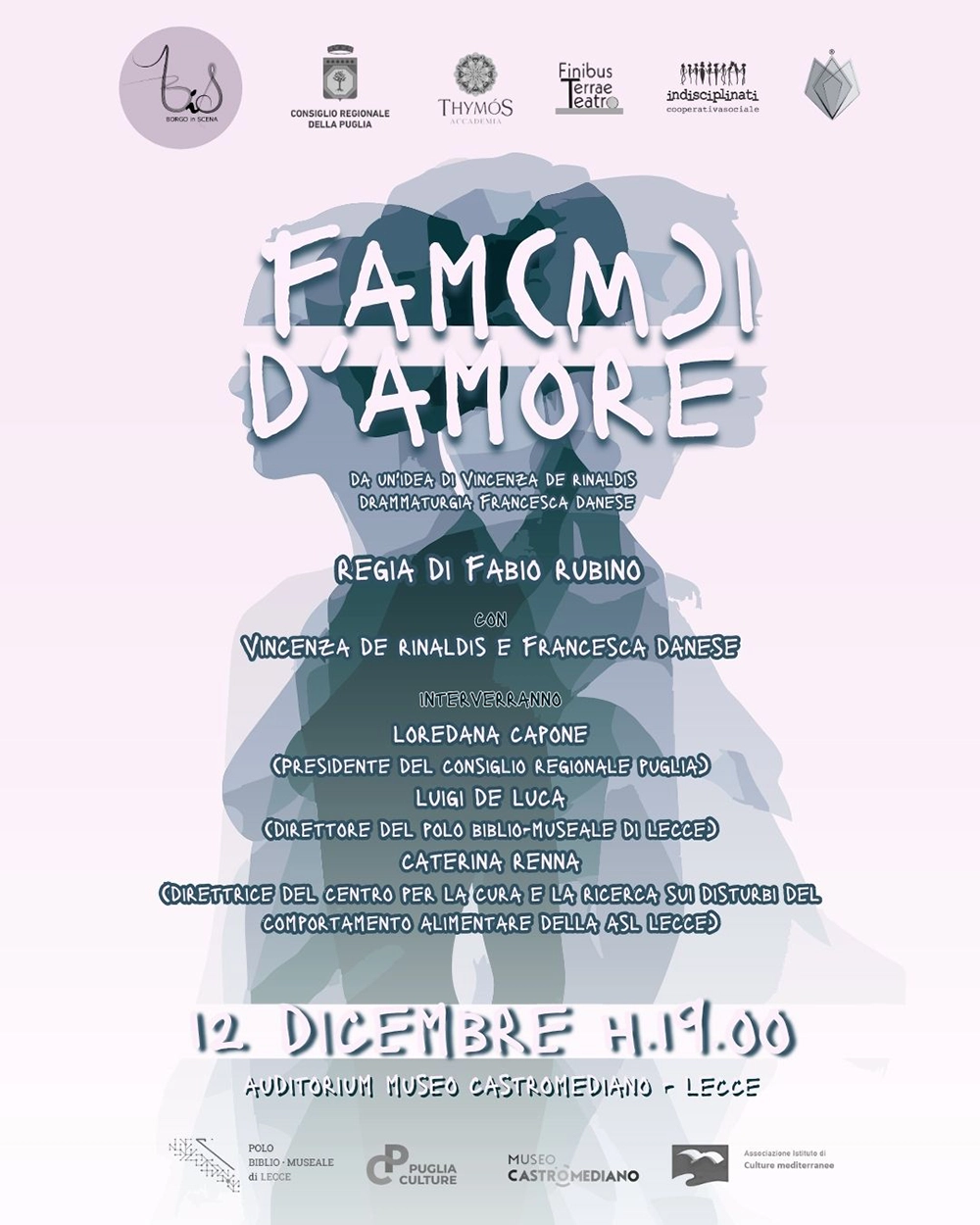 Drammaturgia di Francesca Danese; in scena Vincenza De Rinaldis e Francesca Danese; regia di Fabio Rubino.
