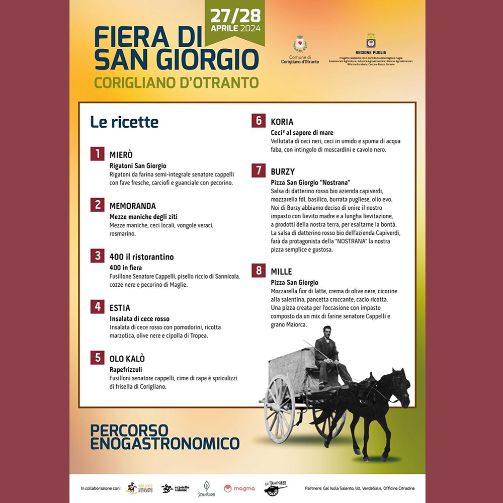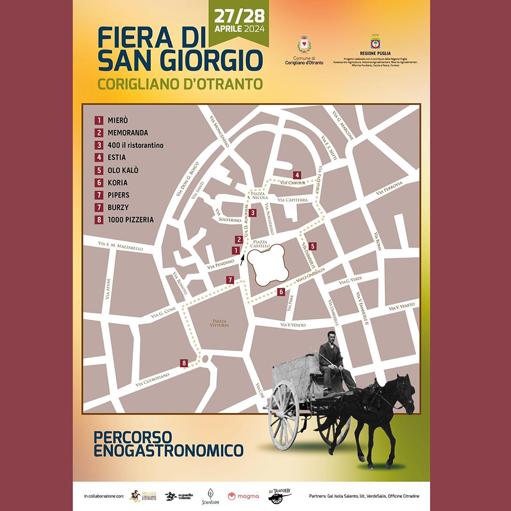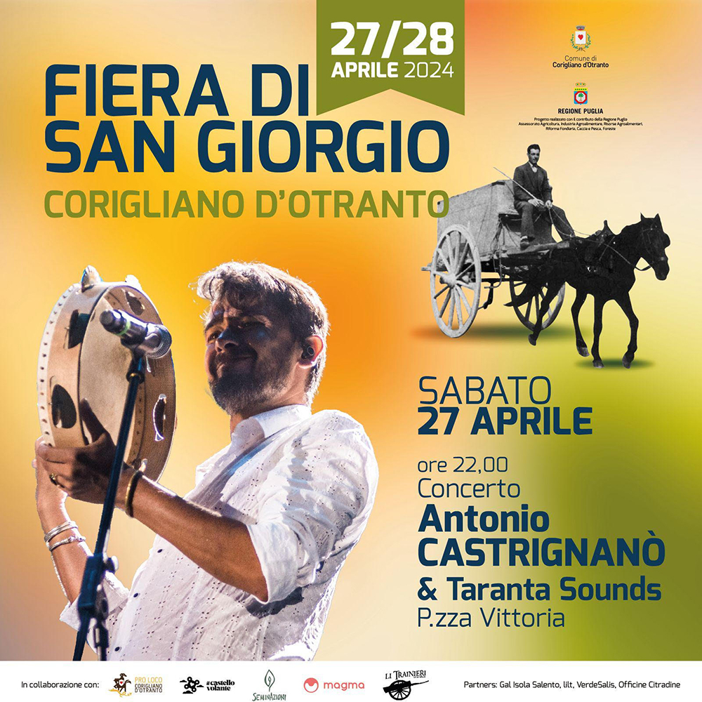 La Fiera di San Giorgio è realizzata dal Comune di Corigliano d’Otranto in collaborazione con la locale Pro Loco, il Castello Volante, ass. La Terra Nutre, ass. Li Trainieri, ass. Officine Cittadine, ass. SeminAzioni, Az. Agricola Agrimò, Magma Aps.