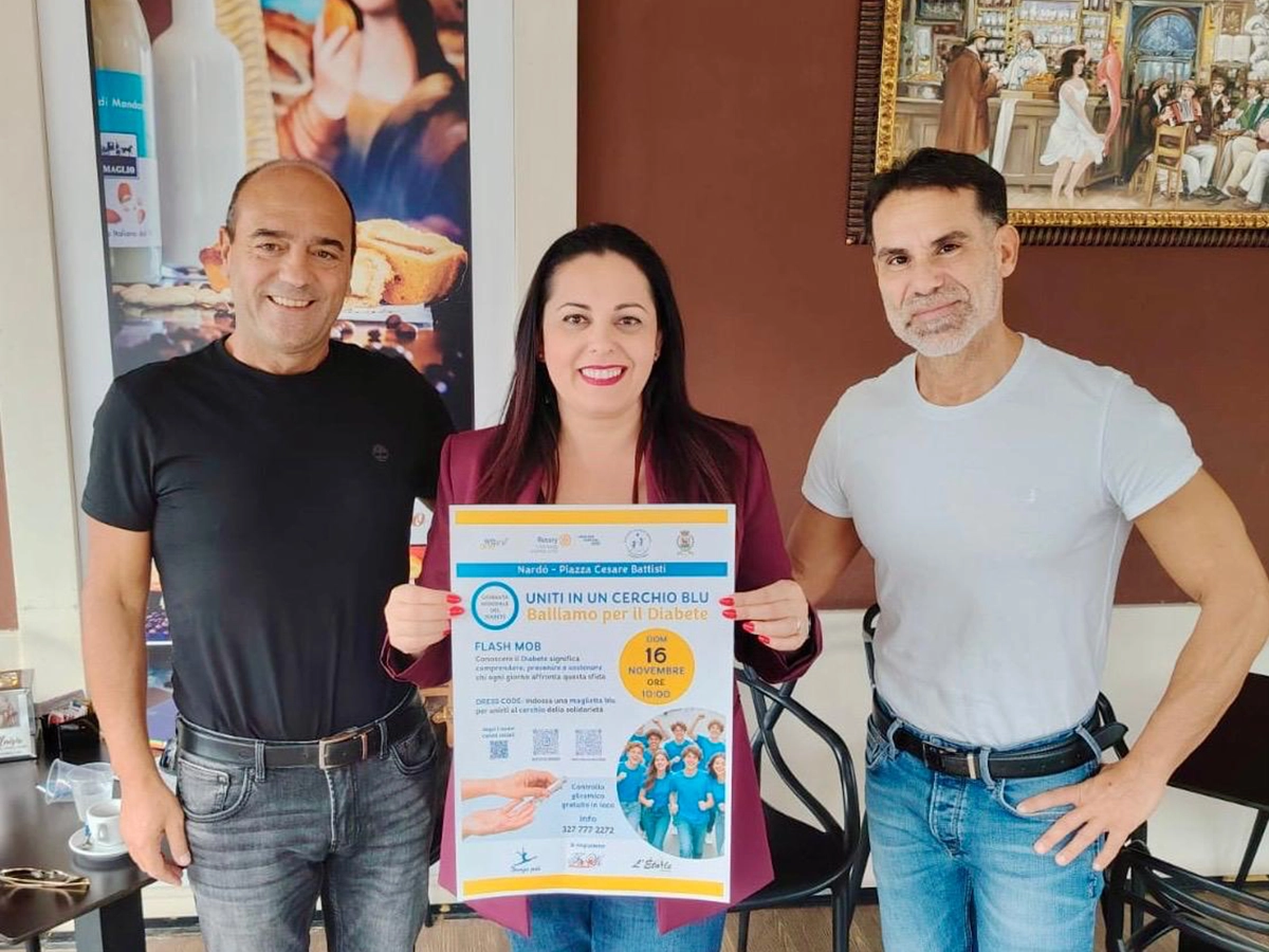 Piazza Cesare Battisti pronta a trasformarsi in un palcoscenico di partecipazione e consapevolezza per la Giornata Mondiale del Diabete, grazie all’iniziativa “Uniti in un cerchio blu – Balliamo per il Diabete”, promossa dal Rotary Club di Nardò e dall’associazione Uniti verso un nuovo domani, presieduti da Tiziana Rizzo e Samuele Rampino, con la collaborazione del Presidente del Consiglio comunale con delega allo Sport Antonio Tondo e del Presidente della consulta dello sport Tony De Paola.