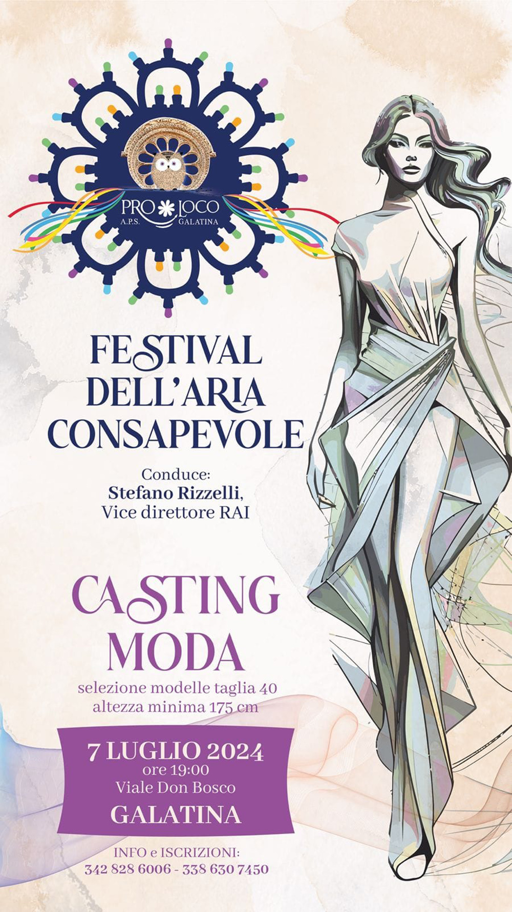 Lorenza Pascali, Presidente della Pro Loco APS Galatina: “Il casting porterà alla selezione delle modelle che saranno protagoniste di un importante evento che si terrà il 21 agosto, quando la moda incontrerà la musica e le tradizioni”