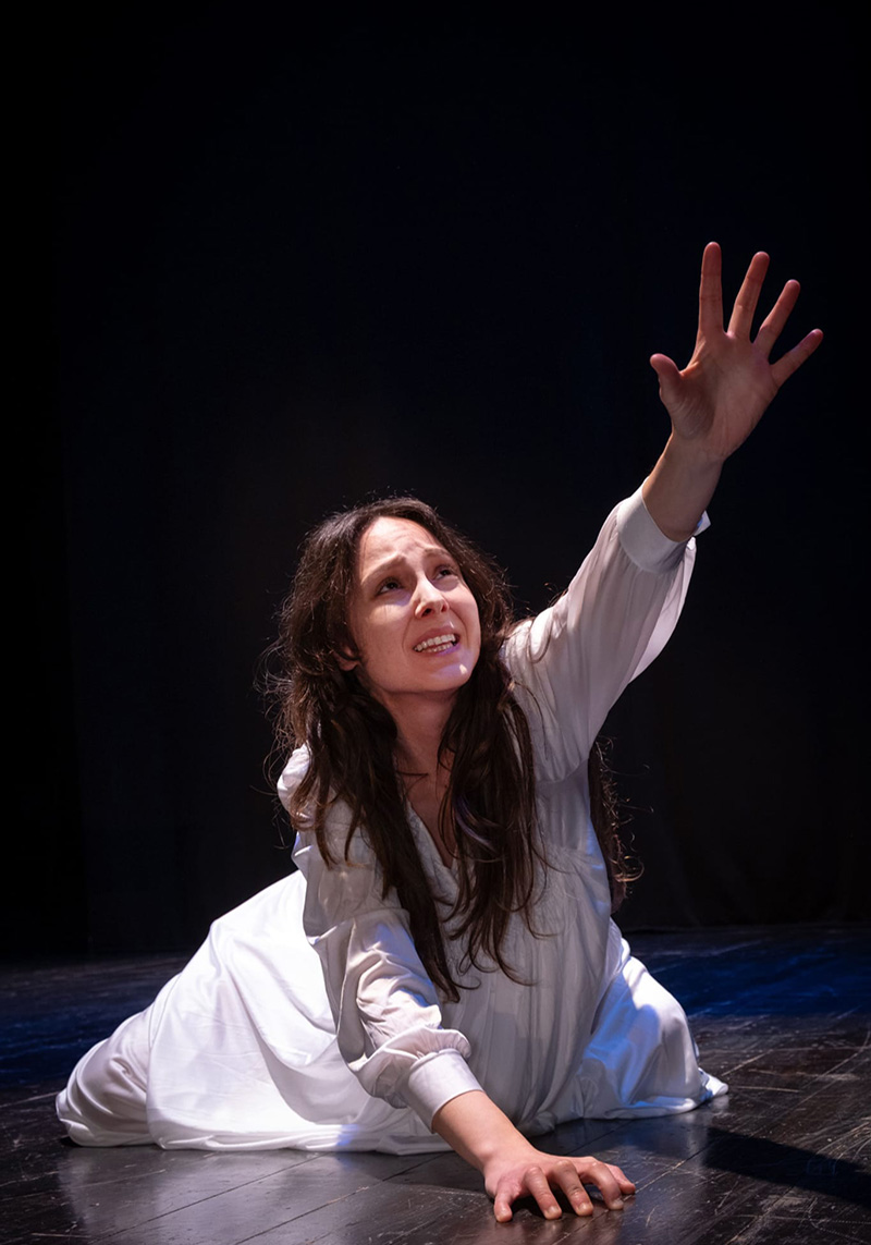 Maria figura mistica legata al Dio del Cristo che si porta alla Croce, disperata e consapevole follia che non perdona il rapimento della piccola, forte e lucida madre, tenace, alla ricerca della vendetta sana per il suo amore e per tutte le madri. E nella sua rabbia cerca la sua resurrezione, impedire alla maledetta luna di compiere altri delitti, vestita nella menzogna del suo dolore come lo è Donn’Anna Luna di Pirandello che rinnega il figlio morto per non separarsene.
