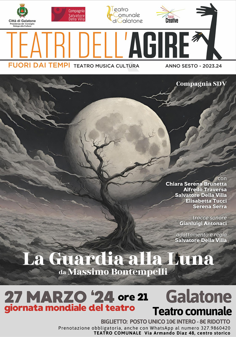 In occasione della Giornata mondiale del Teatro, è programmata una nuova replica della nuova produzione della Compagnia Salvatore Della Villa, La guardia alla luna, dal testo di Massimo Bontempelli.