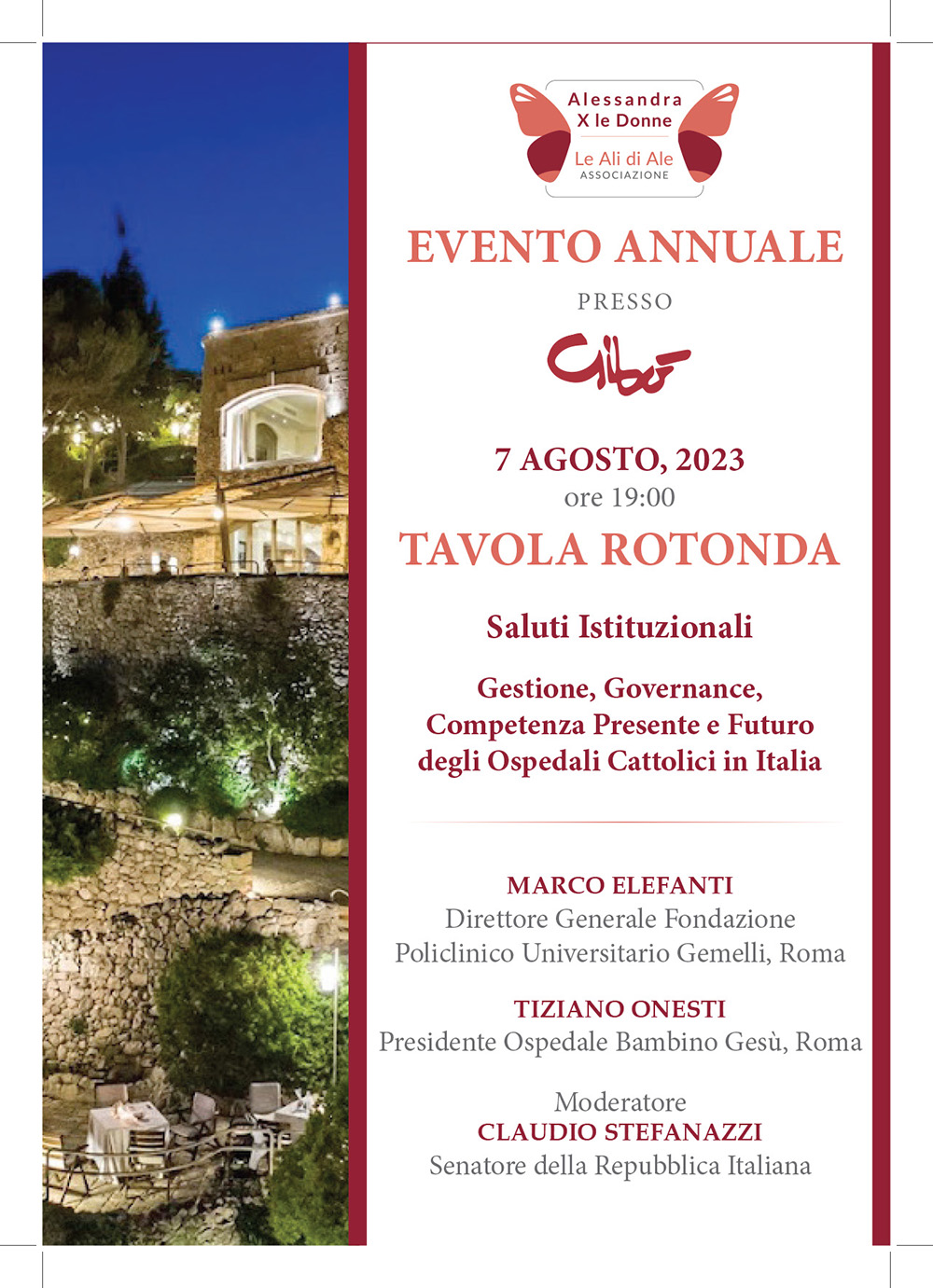 Le Ali di Ale: tavola rotonda su “Gestione, governance, competenze: presente e futuro degli ospedali pubblici” e cena di beneficenza