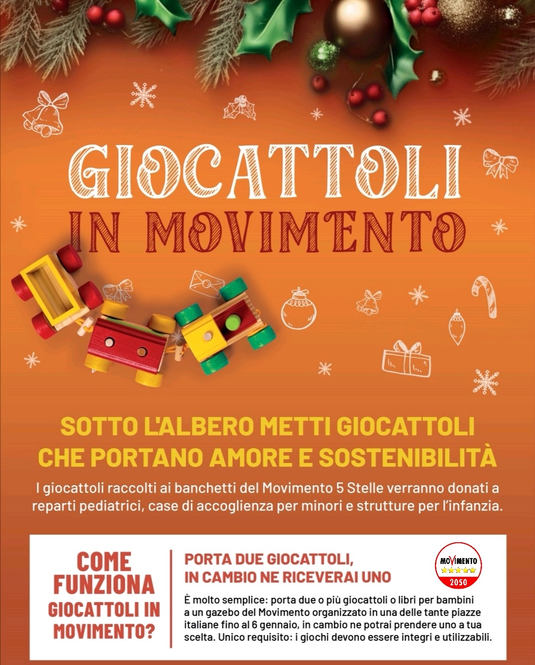 Il periodo delle festività natalizie è l’occasione per la comunità pentastellata di essere presente nelle piazze italiane con una delle sue iniziative più significative: “Giocattoli in MoVimento“.