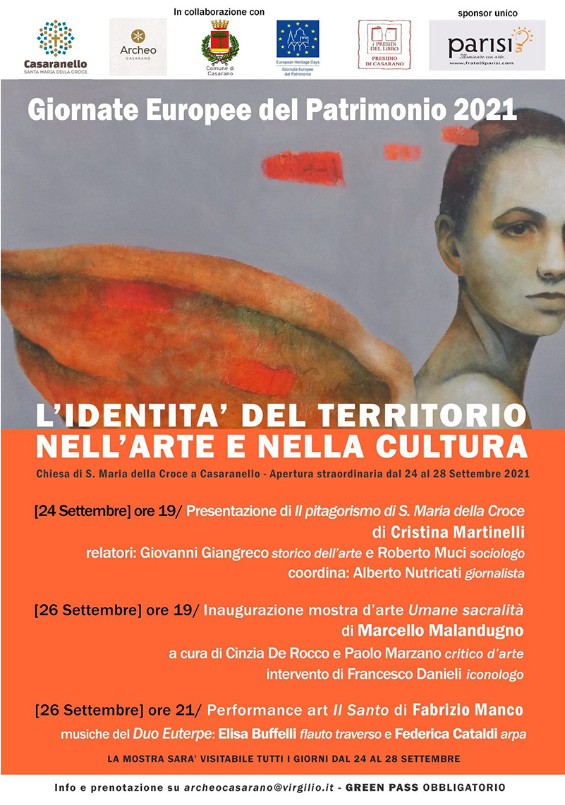 Gli eventi, organizzati con la partecipazione dell’Associazione Archeo Casarano, dell’Associazione Casaranello e Presìdi del Libro e ufficializzati sul sito del Ministero dei Beni Culturali, hanno avuto il patrocinio della Città di Casarano e rispetteranno tutte le normative in materia di prevenzione della diffusione del virus Covid-19.