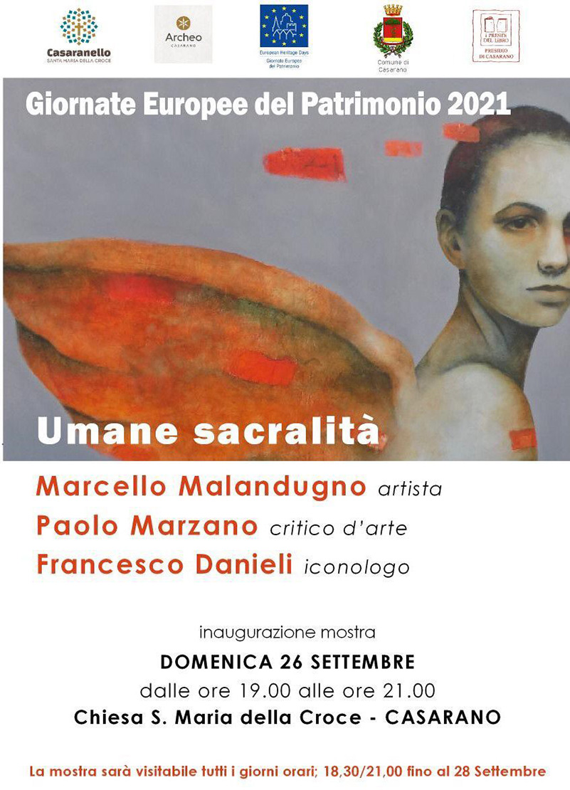 Domenica 26 verrà inaugurata la mostra d’arte del maestro Marcello Malandugno dal titolo “Umane sacralità”. La mostra (comunque visitabile già a partire dal 24 settembre), verrà presentata da due critici d’arte di primo piano come Cinzia De Rocco e Paolo Marzano e dal iconologo Francesco Danieli.