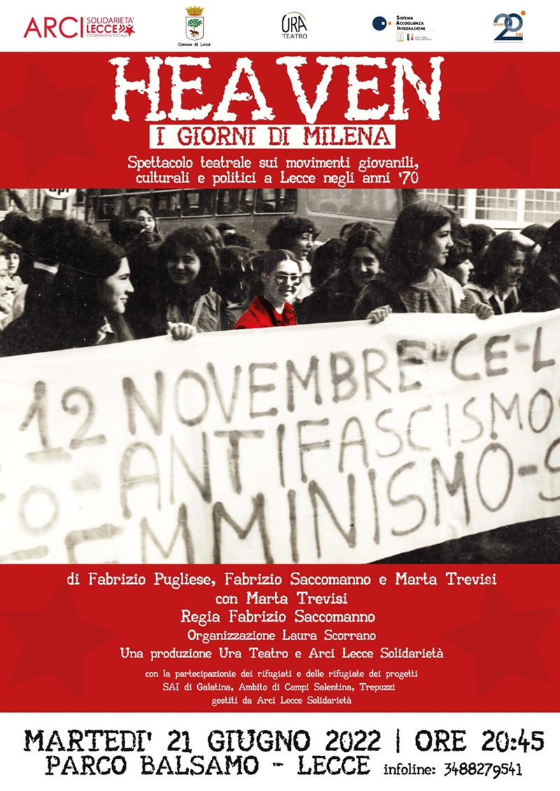 Martedì 21 giugno, presso Parco Balsamo l’opera teatrale inedita che racconta i movimenti sociali e studenteschi degli anni ’70 attraverso la storia di una giovane militante salentina dell’epoca. Anna Caputo, presidente di Arci Lecce Solidarietà: ««Ripercorrere gli anni dei movimenti sociali e studenteschi è per noi un atto di grande responsabilità storica»
