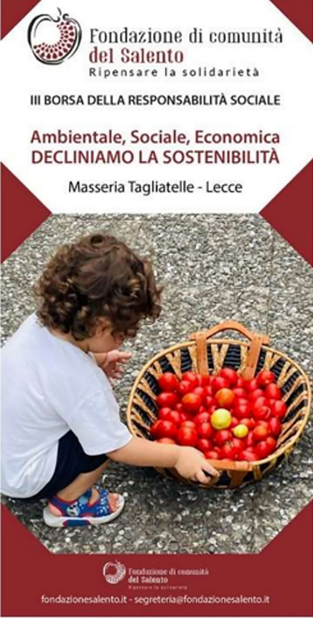 La Fondazione di Comunità del Salento, nell’ambito del progetto “La salute vien pensando – percorsi di empowerment per uno stile di vita sostenibile”, finanziato dalla Regione Puglia – Bando Puglia Capitale Sociale 3.0, nella giornata di venerdì 23 febbraio, dalle ore 8,30 alle ore 13.30, presso la parrocchia di San Giovanni Battista, in Via Novara, 1 organizza a Lecce: “I dialoghi sulla sostenibilità. Perché scegliere percorsi di vita sana e consapevole”.