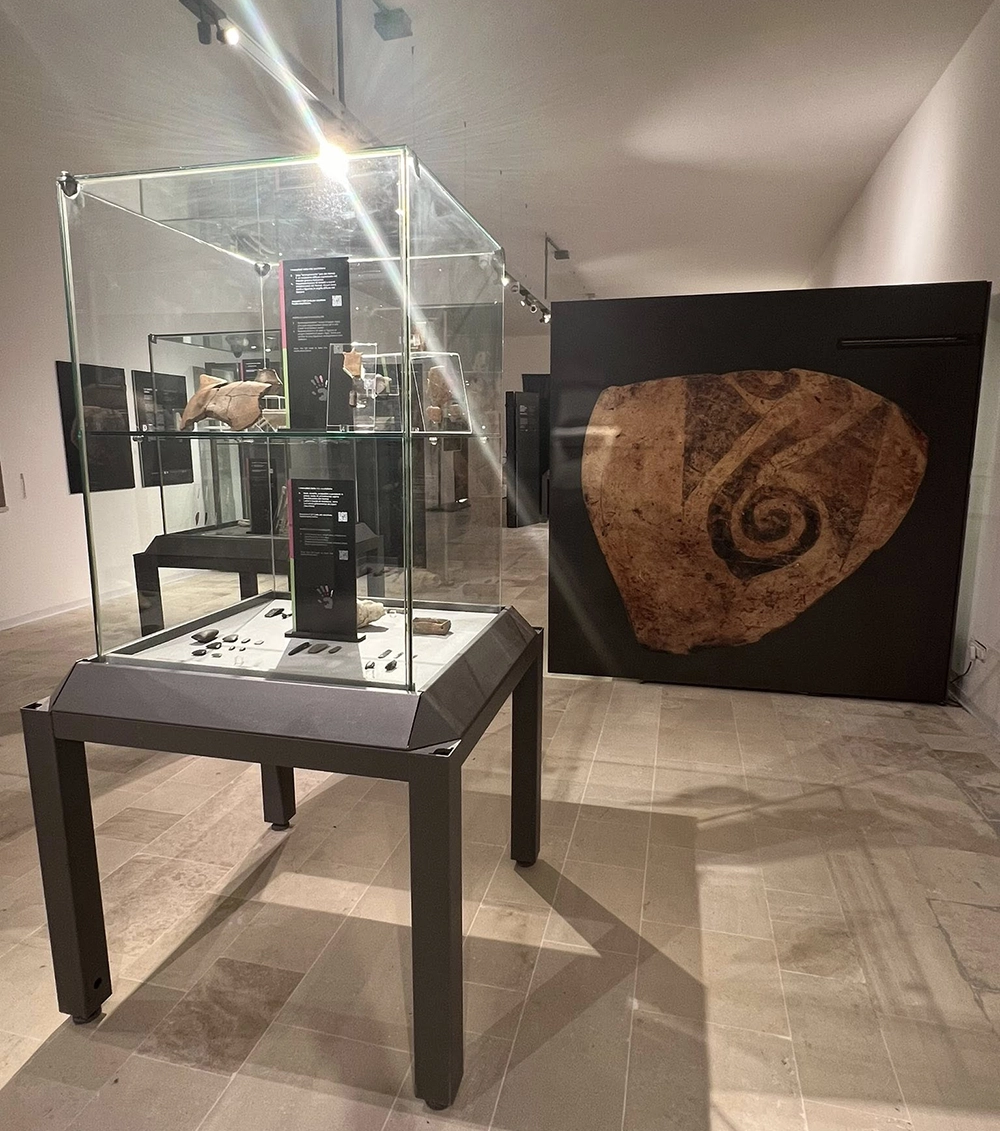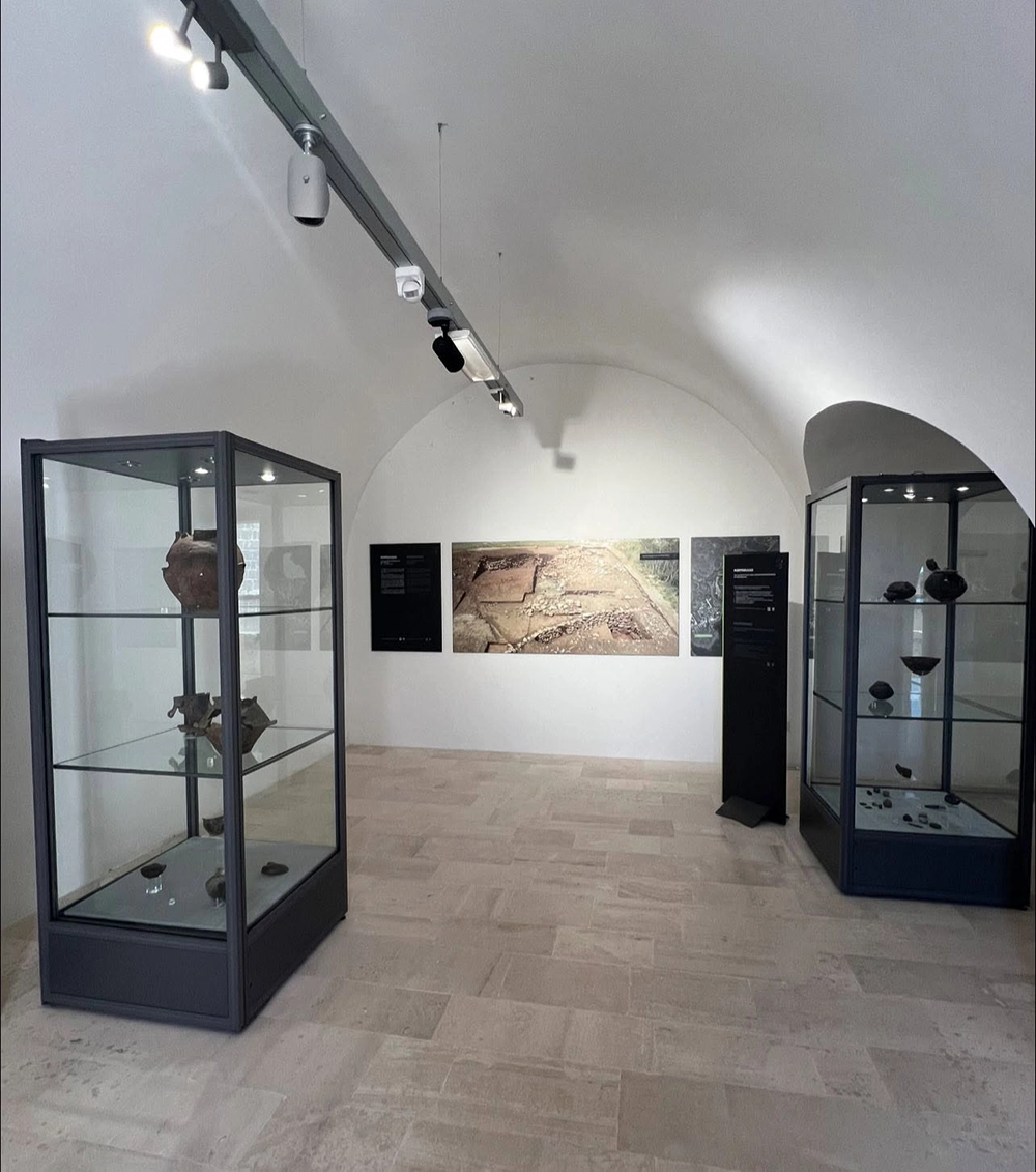 La mostra si articola in tre sale nelle quali si espongono reperti rinvenuti sul territorio di Otranto datati dal Pleistocene all’Età dei Metalli e in una grande sala interamente dedicata al sito culturale della Grotta dei Cervi.