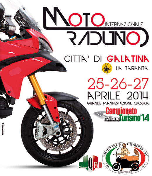 Motoraduno nazionale Città di Galatina dal 25 al 27 Aprile, organizzato dal Moto Club Chirone.
