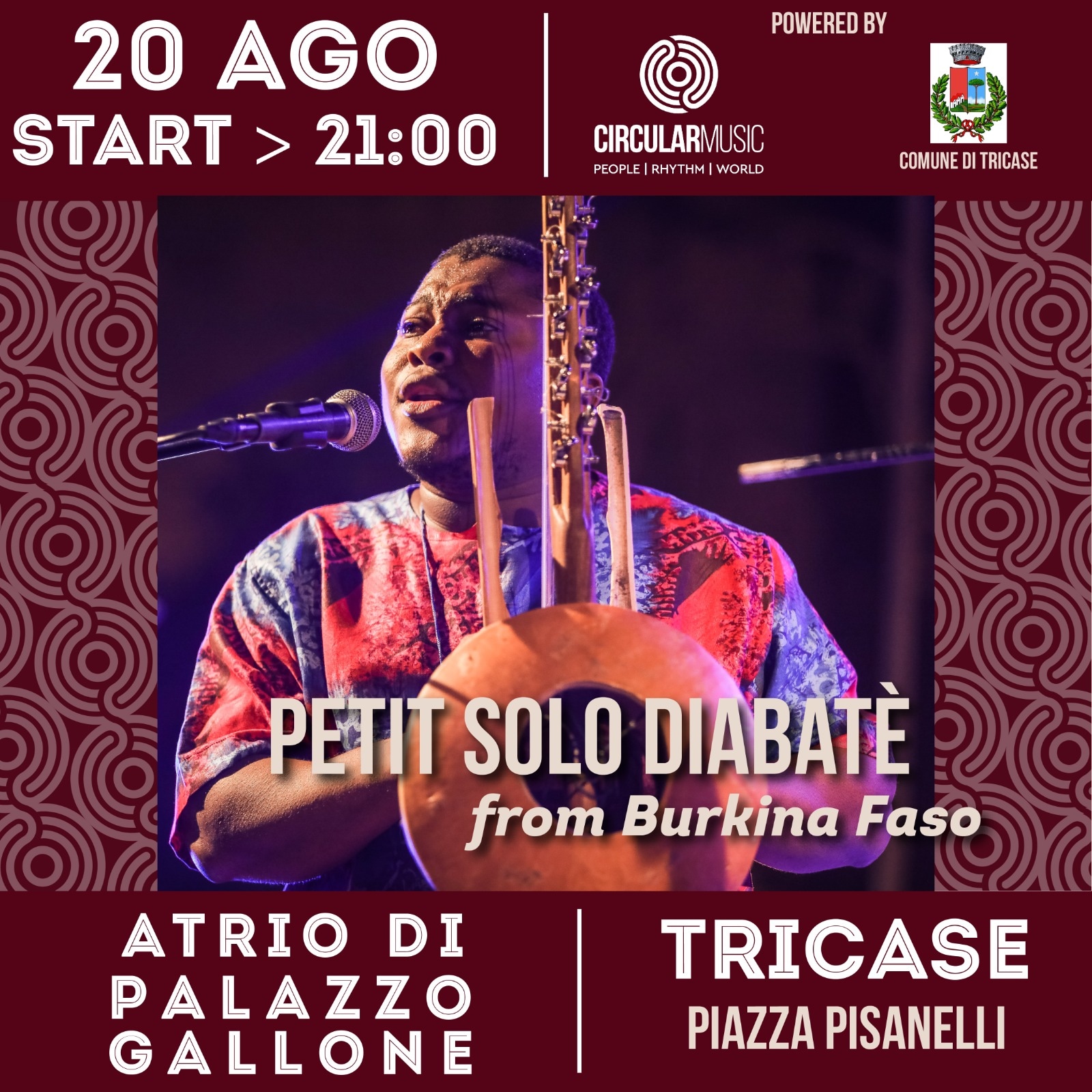Appuntamento domenica 20 agosto a Tricase con la musica di Petit Solo Diabate