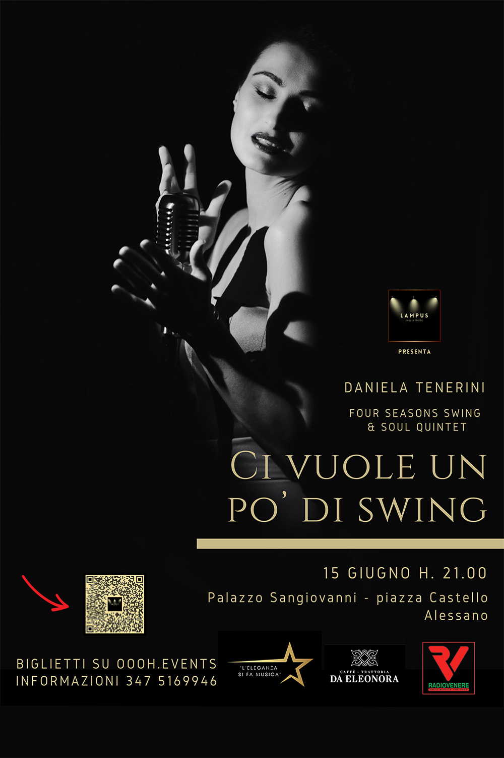 Atmosfere da “Dolce Vita” sabato 15 giugno (dalle 21) nella splendida cornice di Palazzo Sangiovanni ad Alessano con Daniela Tenerini alla guida del Four Seasons Swing & Soul Quintet