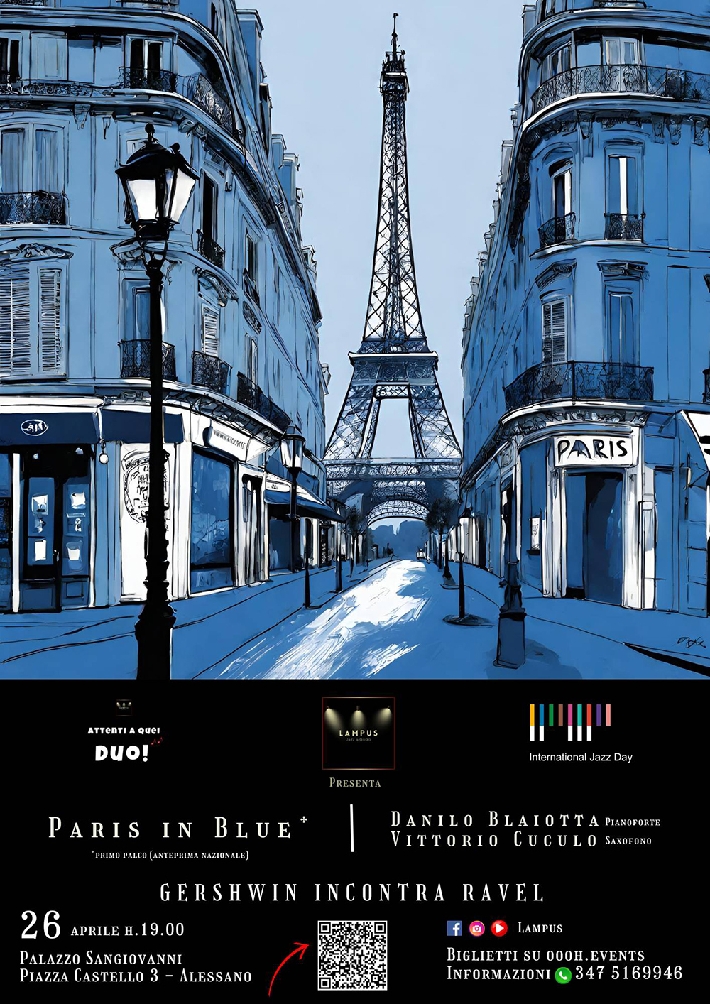 Venerdì 26 aprile, presso Palazzo Sangiovanni, si terrà un concerto, rigorosamente in acustico, dedicato all’incontro tra Gershwin e Ravel: una produzione originale in prima nazionale nata per questa occasione, dal titolo Paris in Blue con Danilo Blaiotta al pianoforte e Vittorio Cuculo al saxofono.