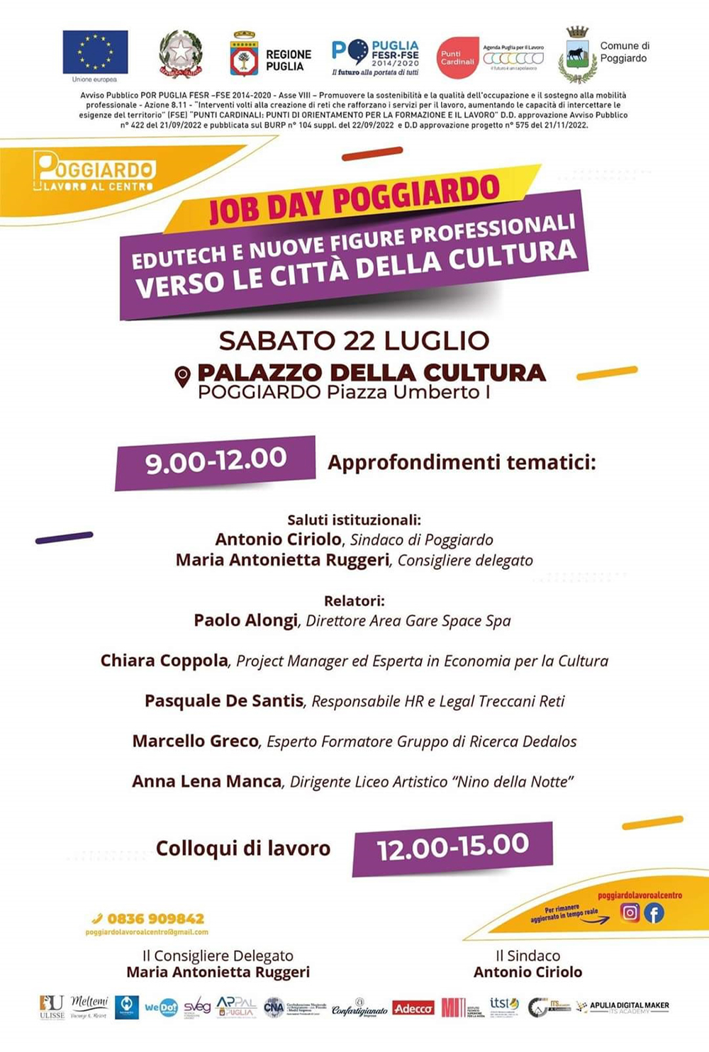 Sabato 22 luglio, dalle 9 alle 15, grazie al contributo di esperti e formatori del settore, con i referenti di SPACE SPA, Ministero della Cultura, Treccani e gruppo di ricerca Dedalos, focus della giornata sarà l’Edutech: le nuove frontiere della formazione e le figure lavorative del mondo tecnologico!