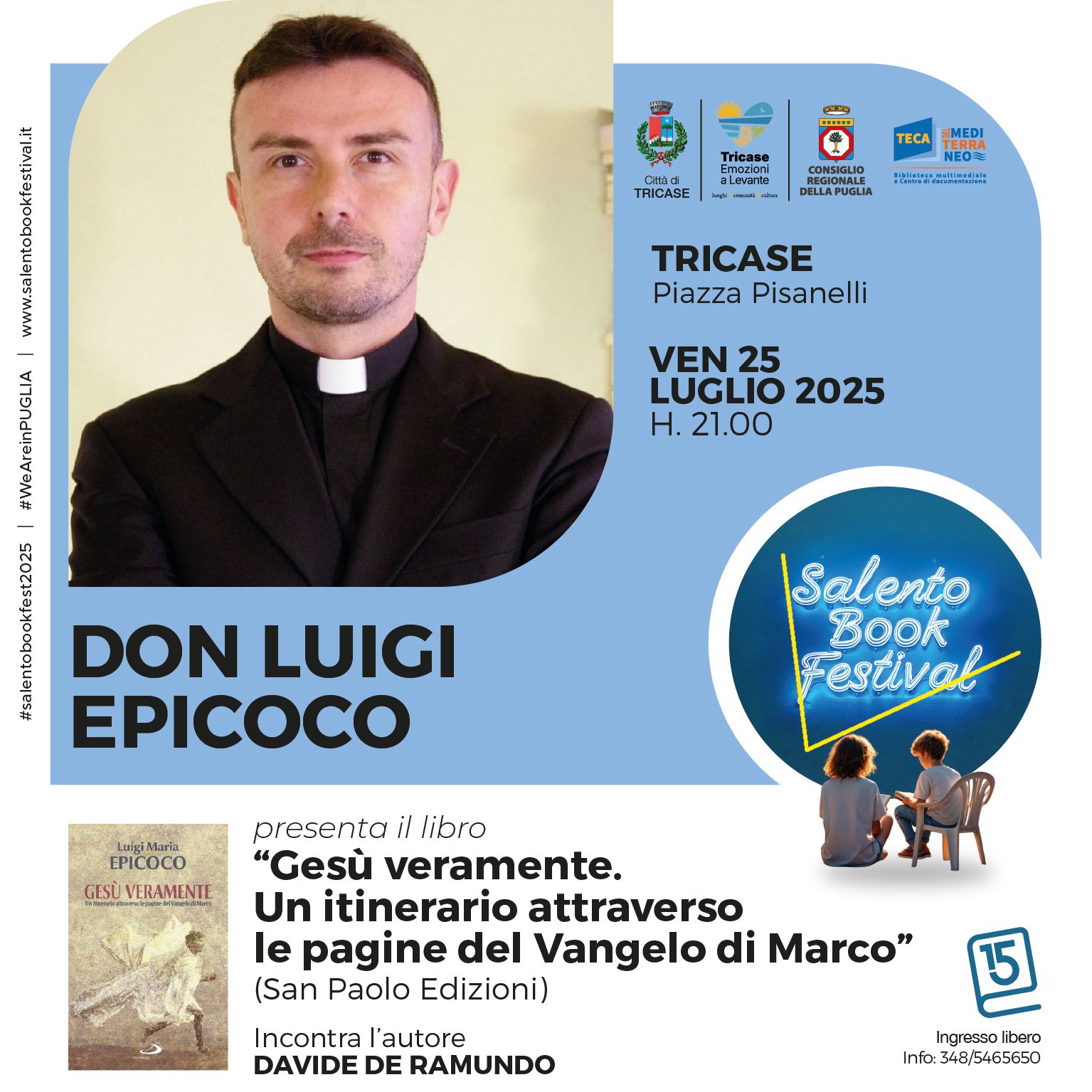 Apre l’evento ๐ƒ๐จ๐ง ๐‹๐ฎ๐ข๐ ๐ข ๐„๐ฉ๐ข๐œ๐จ๐œ๐จ, in Piazza Pisanelli, per presentare il suo libro โ€œ๐‘ฎ๐’†๐’”๐’–ฬ€ ๐’—๐’†๐’“๐’‚๐’Ž๐’†๐’๐’•๐’†. ๐‘ผ๐’ ๐’Š๐’•๐’Š๐’๐’†๐’“๐’‚๐’“๐’Š๐’ ๐’‚๐’•๐’•๐’“๐’‚๐’—๐’†๐’“๐’”๐’ ๐’๐’† ๐’‘๐’‚๐’ˆ๐’Š๐’๐’† ๐’…๐’†๐’ ๐‘ฝ๐’‚๐’๐’ˆ๐’†๐’๐’ ๐’…๐’Š ๐‘ด๐’‚๐’“๐’„๐’โ€ (San Paolo Edizioni).ย Uno scritto che propone un profondo percorso spirituale e meditativo attraverso il Vangelo di Marco, offrendo spunti di riflessione per vivere unโ€™autentica esperienza di fede, ๐ซ๐ข๐ฌ๐œ๐จ๐ฉ๐ซ๐ž๐ง๐๐จ ๐ฅ๐š ๐Ÿ๐ข๐ ๐ฎ๐ซ๐š ๐๐ข ๐†๐ž๐ฌ๐ฎฬ€ nella concretezza della sua umanitร  e nella profonditร  del suo mistero divino.