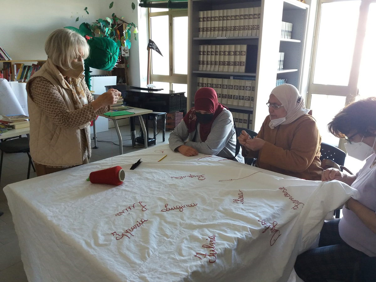 Una relazione paziente intrecciata attraverso le parole – scritte, lette o cucite a mano – durante laboratori di promozione della lettura e di alfabetizzazione. È il modo in cui “Voce alle donne” ha declinato “Unde Venis? Quo Vadis?”, azione volta alla promozione della cultura materiale e immateriale locale e allo scambio tra culture nell’ambito di “Leggere tra due mari”.