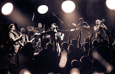 Trasportata dai venti vorticosi che illuminano le coste dell’Adriatico, la BandAdriatica voga sul mare agitato della musica salentina con elementi balcanici e nordafricani. Parte dalla banda tradizionale che in Puglia anima le feste, le processioni e i funerali, e che viaggia, di notte, di paese in paese. Il viaggio si espande e pone il Mediterraneo come una complessa “babilonia”, dove i linguaggi iniziano ad armonizzarsi sulle melodie popolari nel fervore meticcio delle città portuali. Ancora più raggianti di là dal mare d’origine, le tradizioni pugliesi assumono una nuova risonanza e portano lontano gli echi frenetici della musica del Salento. Dieci anni di ricerca sulle matrici musicali comuni delle sponde del Mare Adriatico, confrontandosi con le musiche di Albania, Macedonia, Croazia, con le fanfare Serbe e il Nord Africa e spingendosi fino al Mediterraneo più orientale (Turchia, Libano e Armenia nel cd “Babilonia”). L’esibizione della band ha affascinato la critica del Babel Med 2017 di Marsiglia che l’ha definito “uno delle migliori proposte di tutta la Rassegna” e “uno dei migliori live-act italiani”. I musicisti della BandAdriatica vantano collaborazioni con artisti del calibro di Bombino, Mercan Dede, Rony Barrak, Savina Yannatou, Chieftains, Burhan Ochal, Kocani Orkestar, Boban Markovic Orchestra, Fanfara Tirana, Eva Quartet e Cafer Naziblas.