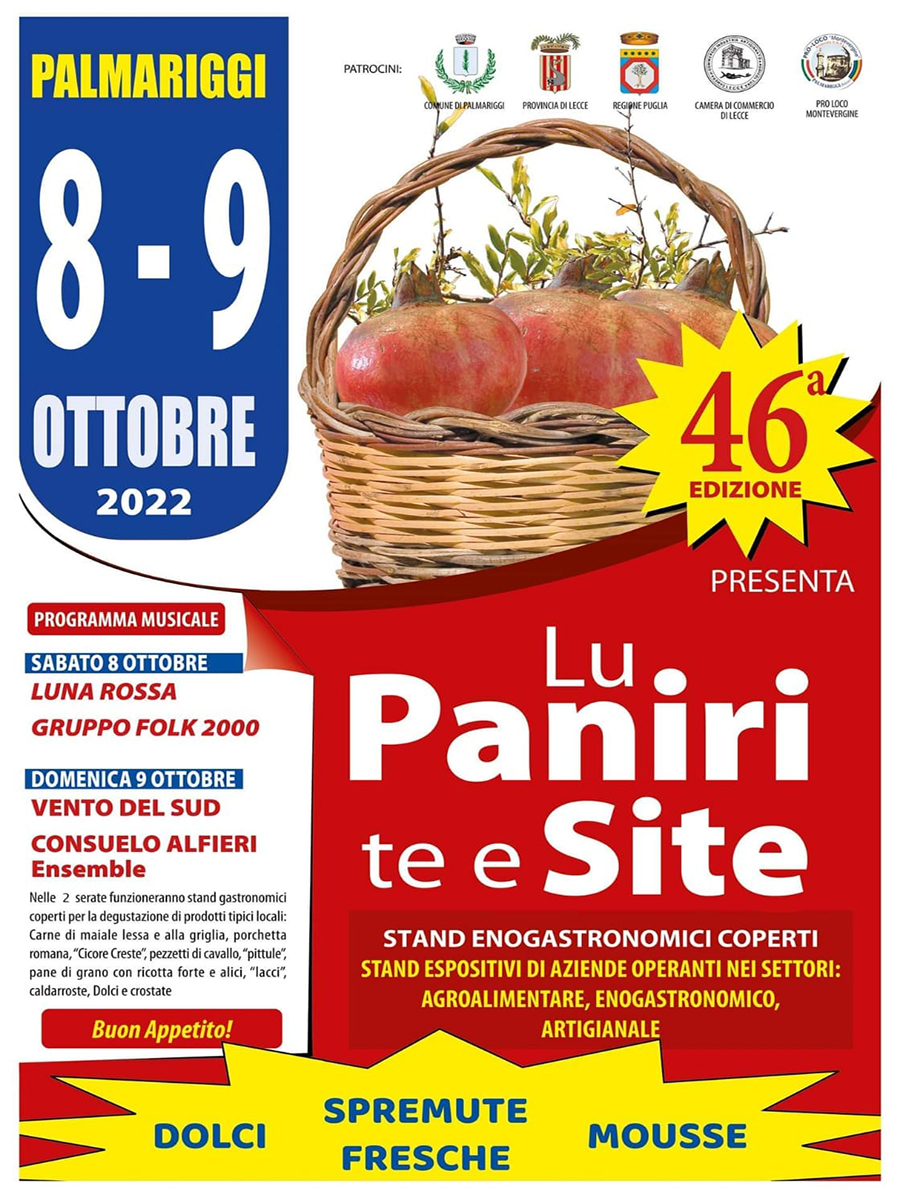 L’organizzazione è a cura dell’Associazione “Lu paniri te e site”, con il patrocinio di Comune di Palmariggi, Regione Puglia, Camera di commercio di Lecce e Pro Loco Montevergine.