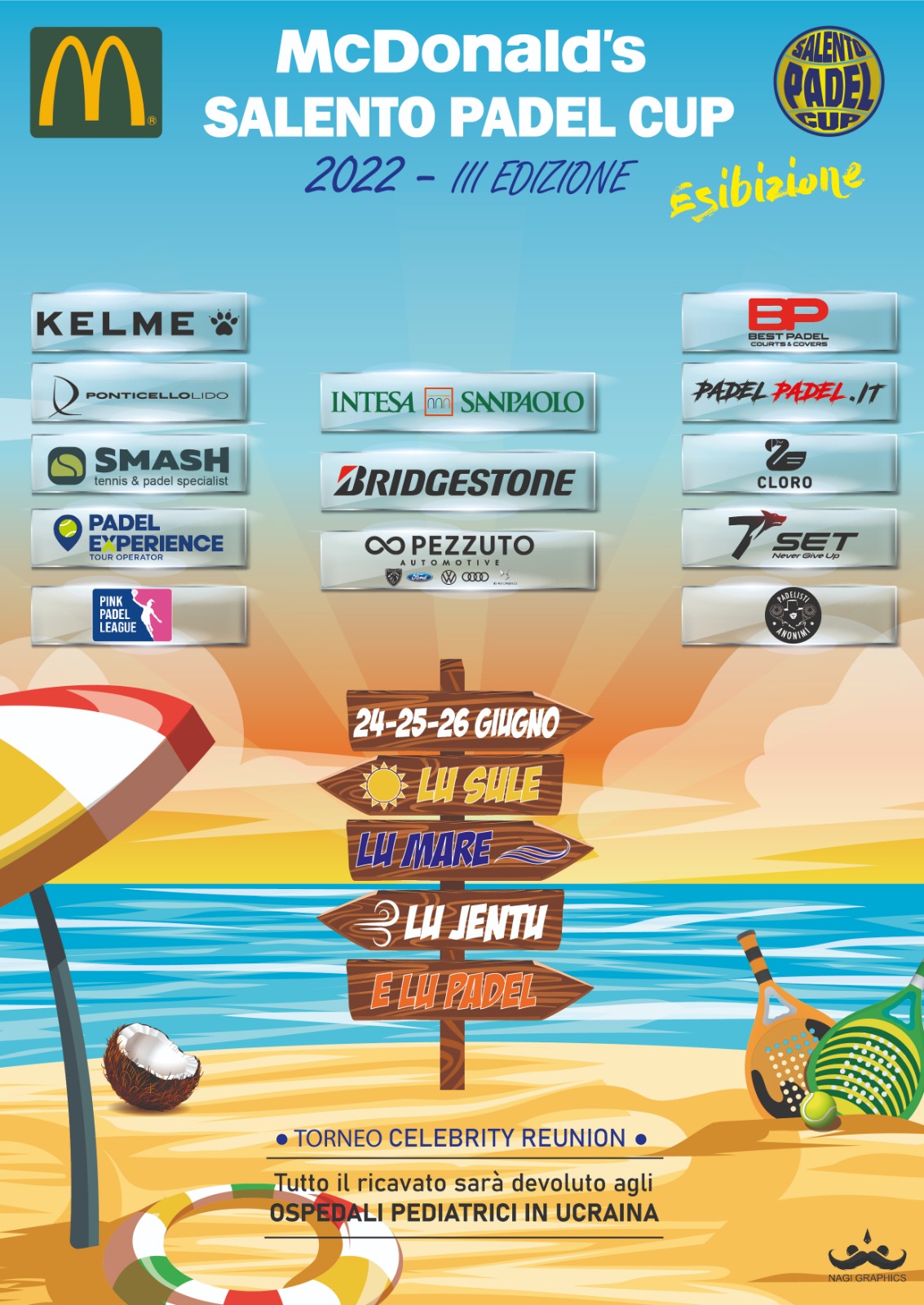 Mc Donald’s Salento Padel Cup 2022: tre giorni di sport e divertimento e solidarietà. Torneo esibizione il 24, 25 e 26 giugno al Pala Summer di Lecce: tra i partecipanti, la coppia simbolo del Tricolore, Chiara Pappacena e Giulia Sussarello, e Aris Patiniotis e Oscar Vasquez, fra i primi 150 nel ranking mondiale. Per la celebrity reunion, Stefano Fiore e Stefano Mauri, Nicola Legrottaglie e Leonardo Blanchard. Il ricavato sarà devoluto agli ospedali pediatrici in Ucraina