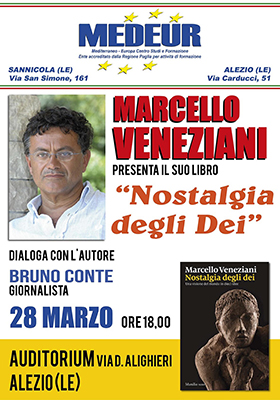 Marcello Veneziani, giornalista, scrittore e filosofo, tra i più lucidi intellettuali del nostro Paese, torna nel Salento per un minitour di presentazioni del suo ultimo “Nostalgia degli Dei. Una visione del mondo in dieci idee”, promosso da Libri di Acqua, che lo vedrà giovedì 28 marzo ad Alezio (ore 18), presso l’Auditorium, in un incontro organizzato da Medeur, e presso la Biblioteca “Maria Paiano” di Vignacastrisi di Ortelle (ore 21) per la rassegna Incontri d’Autore.