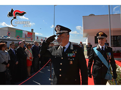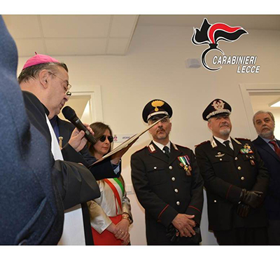 La cerimonia di inaugurazione ha seguito un cerimoniale scandito da molteplici momenti significativi: la resa degli onori al Generale di Brigata Alfonso Manzo, Comandante della Legione Carabinieri “Puglia”,; gli Onori ai Caduti; la donazione delle bandiere del Tricolore ed europea da parte del sindaco Mariano al comandante della stazione dei carabinieri, il Maresciallo Magg. Davide Stella; la cerimonia dell’Alzabandiera, il tradizionale e beneaugurale taglio del nastro e la benedizione dei locali della stazione da parte di S.E. Mons. Donato Negro arcivescovo di Otranto.