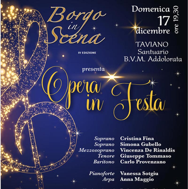 L’Opera In Festa andrà in scena domenica 17 dicembre, alle 19,30, a Taviano presso il Santuario della B.V.M Addolorata.