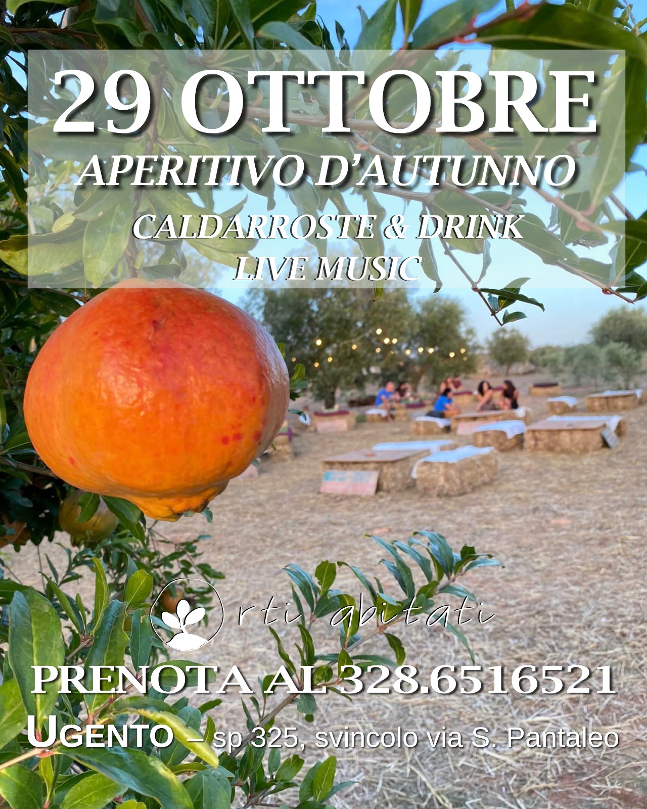 Una domenica tra i filari di melograni e l’uliveto illuminato da romantiche lucine: il 29 ottobre un magico aperitivo contadino accenderà il giardino poetico di Orti abitati, a Ugento (sp 325, svincolo via S. Pantaleo).
