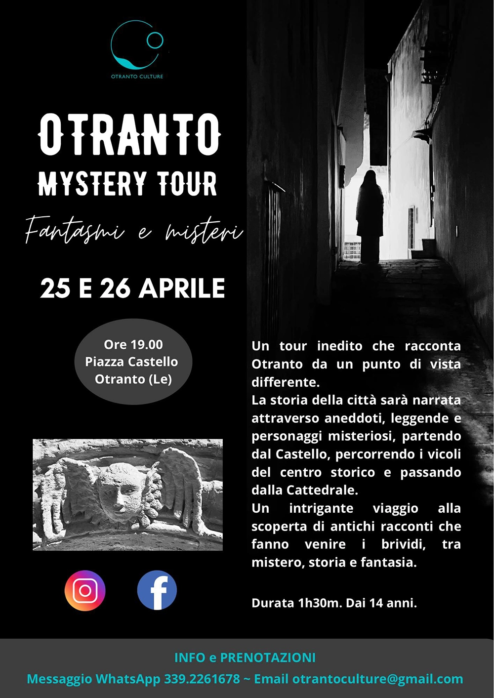 Visto il grande successo dell’iniziativa, propone due date dell’Otranto Mystery Tour, venerdì 25 e sabato 26 aprile.