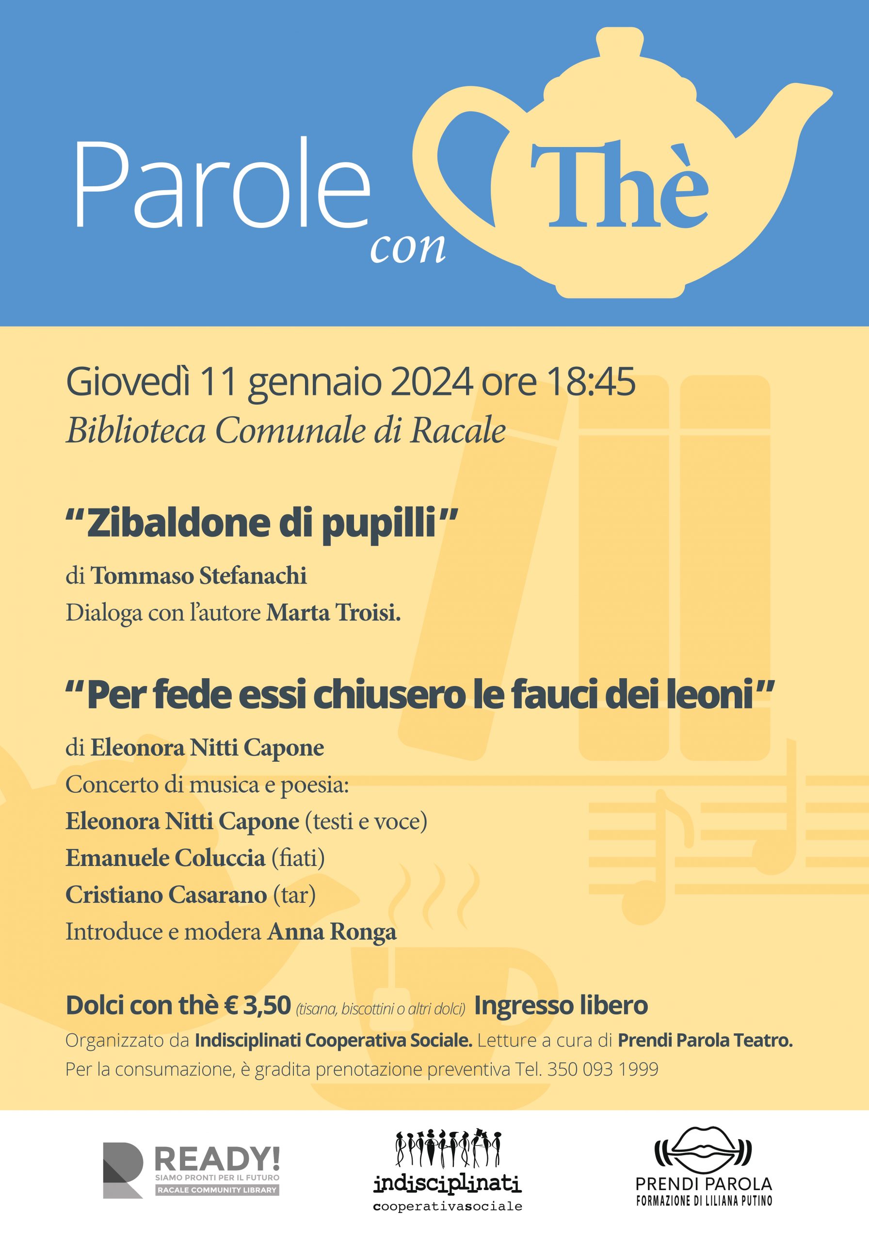 Parole con thè nasce da una proposta di Liliana Putino, presidente della cooperativa sociale Indisciplinati (gestore della Community Library di Racale), quella di un nuovo format che mette in dialogo gli autori.