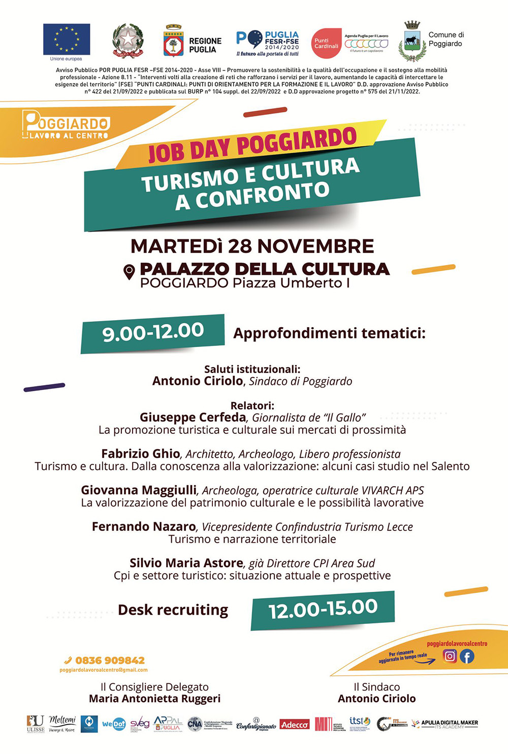 Quello di domani al Palazzo della Cultura sarà l’ultimo appuntamento della serie “Poggiardo – Lavoro al Centro”, nell’ambito di Punti Cardinali della Regione Puglia.