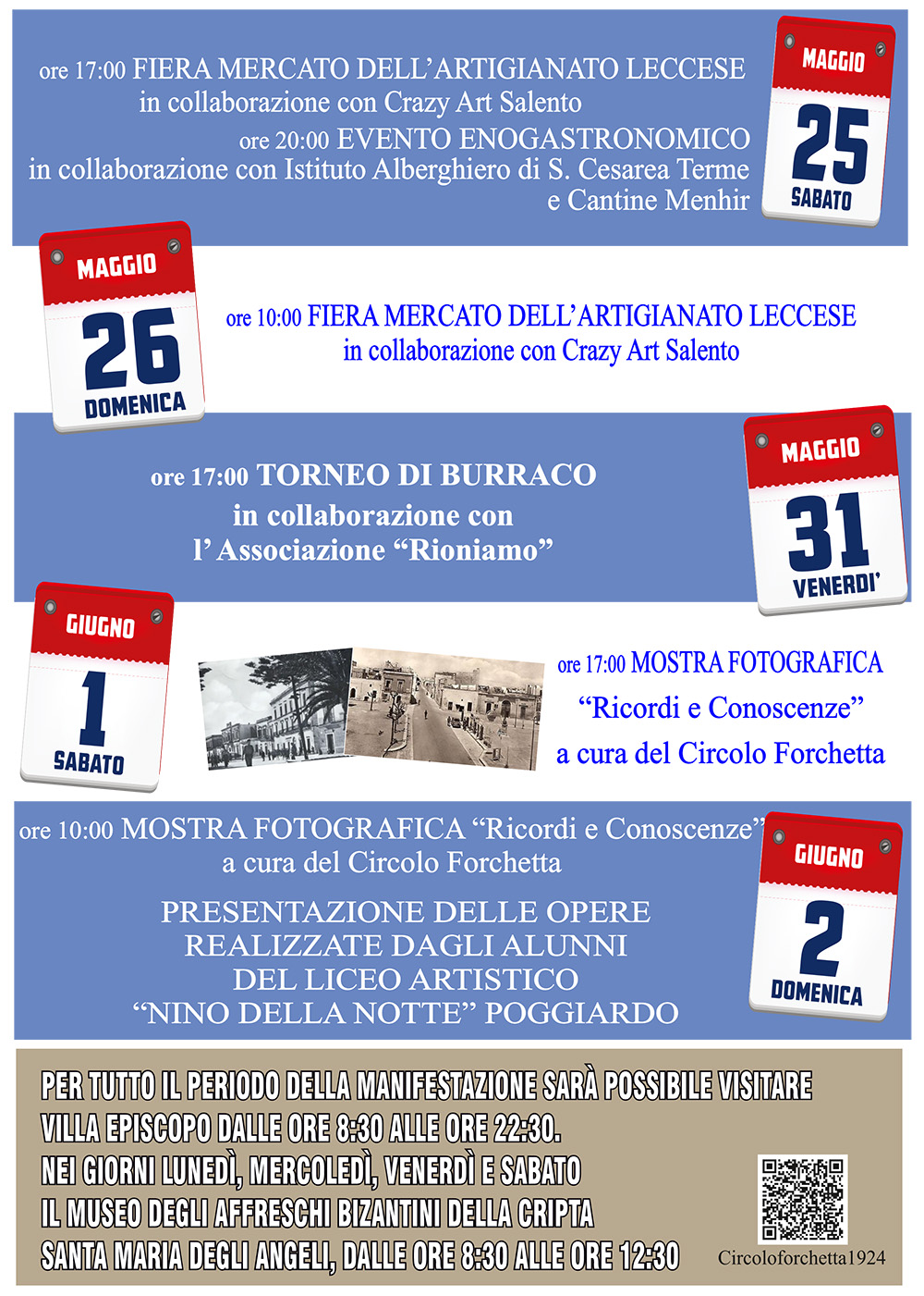 Altri eventi in programma sono dettagliati nel programma composto dal Circolo, organizzati con il patrocinio e la collaborazione del comune di Poggiardo.