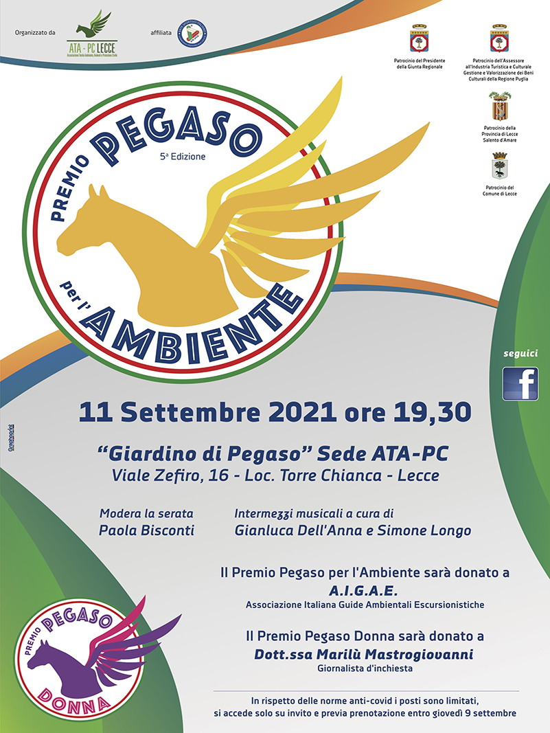 Il Premio Pegaso per l’Ambiente, ideato e promosso dall’Associazione ATA-PC Lecce, è giunto alla V Edizione.