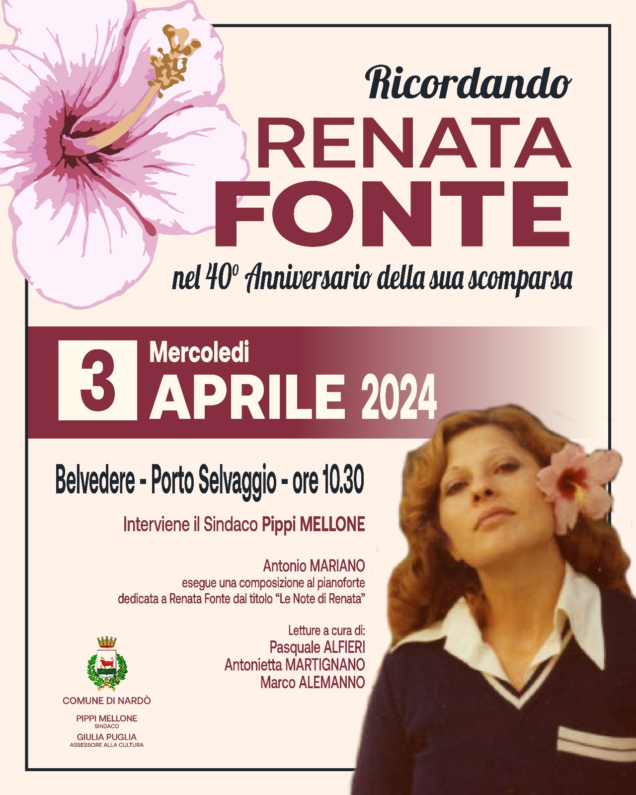 Sono in programma alcune letture di Marco Alemanno, Pasquale Alfieri e Antonietta Marginano, su una composizione al pianoforte di Antonio Mariano dedicata a Renata Fonte dal titolo Le note di Renata.