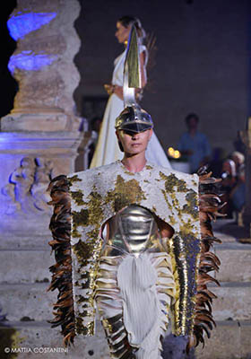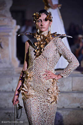 In passerella la collezione Divina Commedia, che dopo la fashion week milanese e la menzione speciale del presidente onorario della Camera Nazionale della moda Mario Boselli, ritorna ad incantare tra luci, colori e la magia che traspare da abiti realizzati a mano, curati nei dettagli e che si raccontano con le emozioni.